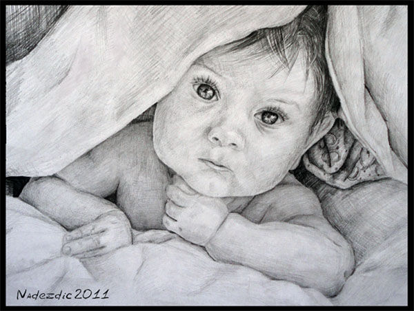 Как да нарисуваме бебешки портрети с молив? Предлагам ви алгоритъм, който ще ви позволи да рисувате на високо ниво: