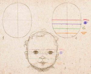 Един от основателните въпроси е: "Как се рисува лицето на бебето?" За да се изобрази лицето на бебето, трябва да се вземат предвид някои анатомични особености, за които ще стане дума по-долу: