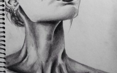 - Торсът е нарисуван като половинка от тесен овал. Това се прави, като се нарисува тясна арка, заоблена надолу, и овал на противоположната страна.