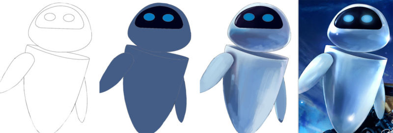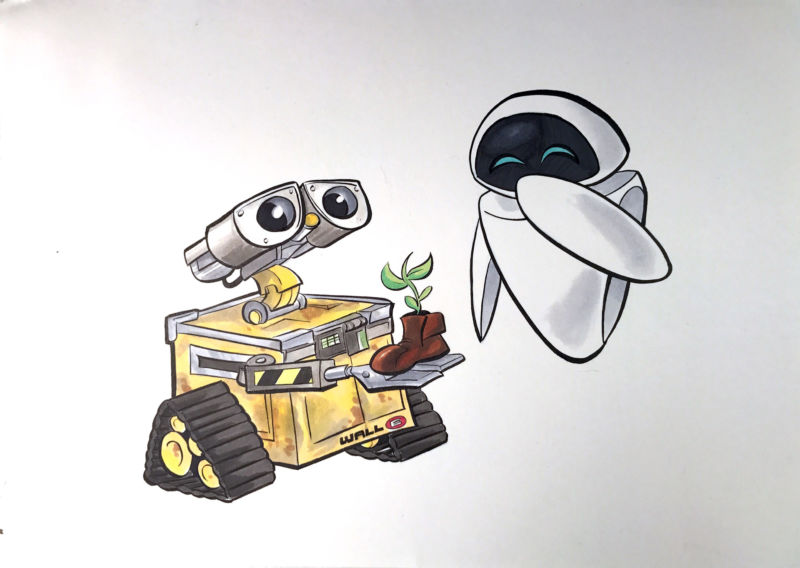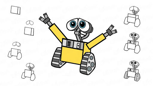Друг герой от анимационния филм WALL-E. Eva е символ на прогресивното, техническо бъдеще. Тя е олицетворение на елегантност и кратък дизайн. Изображението ѝ е достатъчно просто, за да бъде подходящо и за детски рисунки: