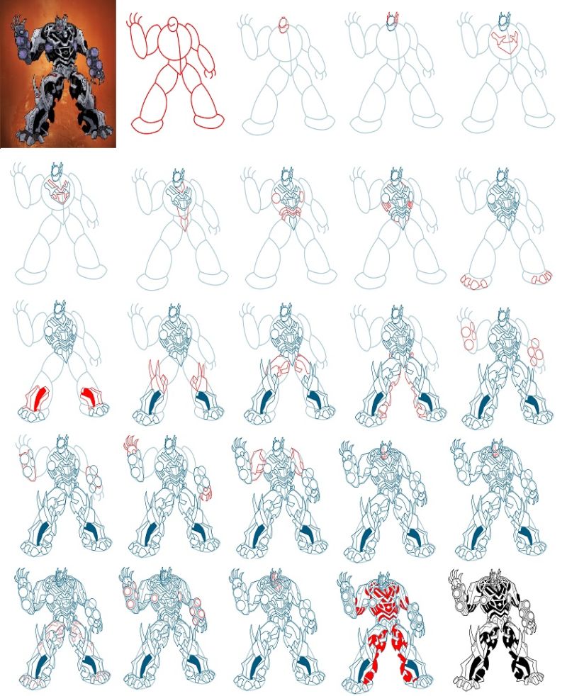Въпреки това много хора са впечатлени от факта, че такава сложна и ергономична организация на външния му вид е измислена от човека. И все пак, как да нарисувате сами робот с молив, ако нямате уменията за това?
