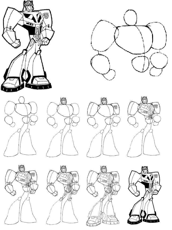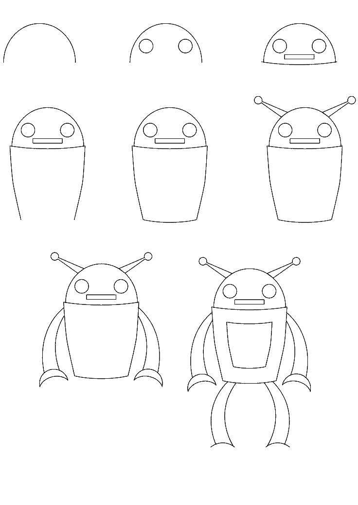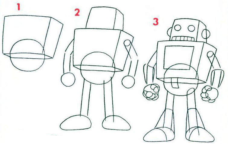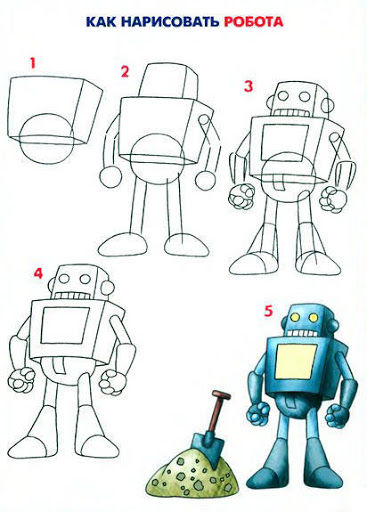 Това помага на детето да нарисува робота стъпка по стъпка без чужда помощ.