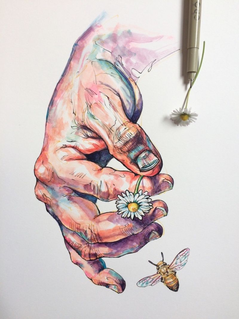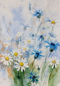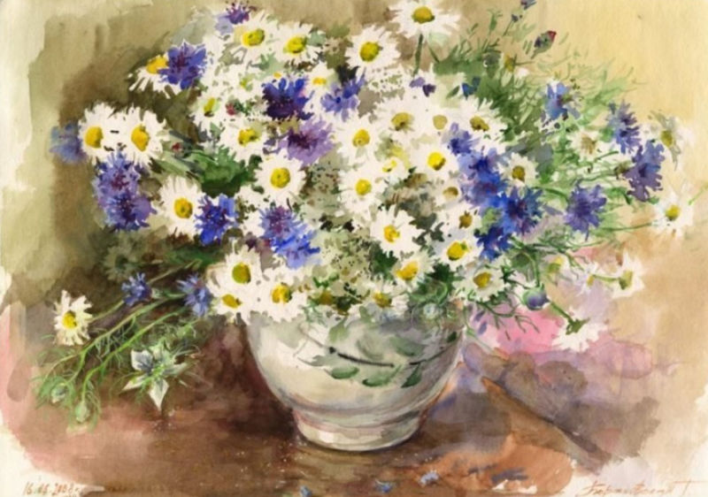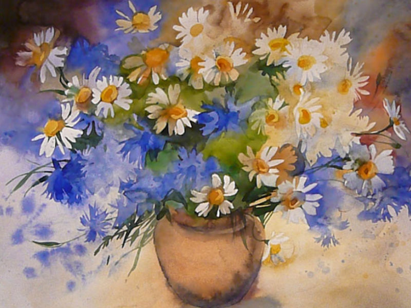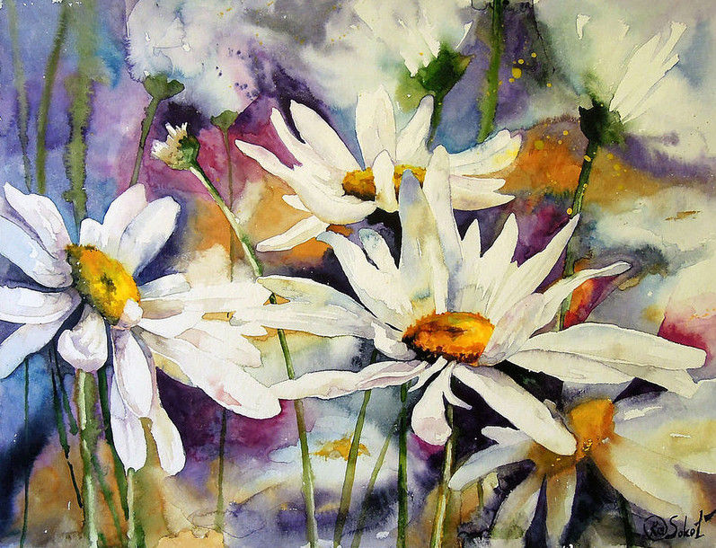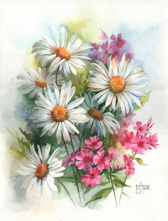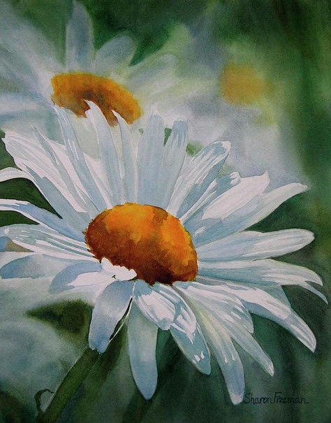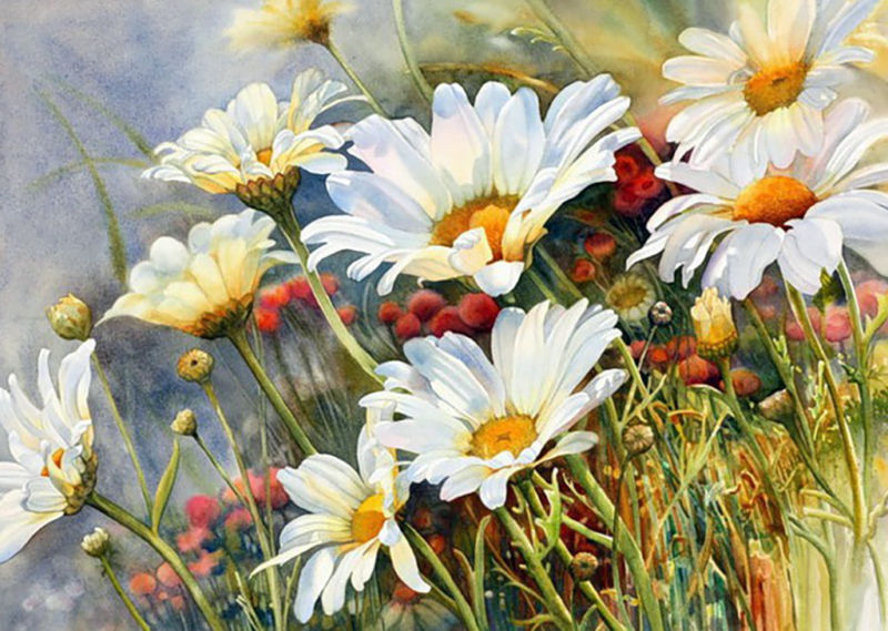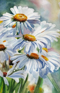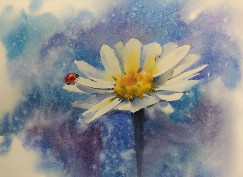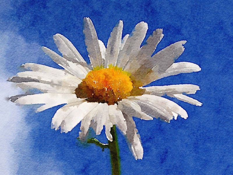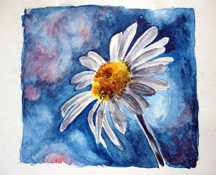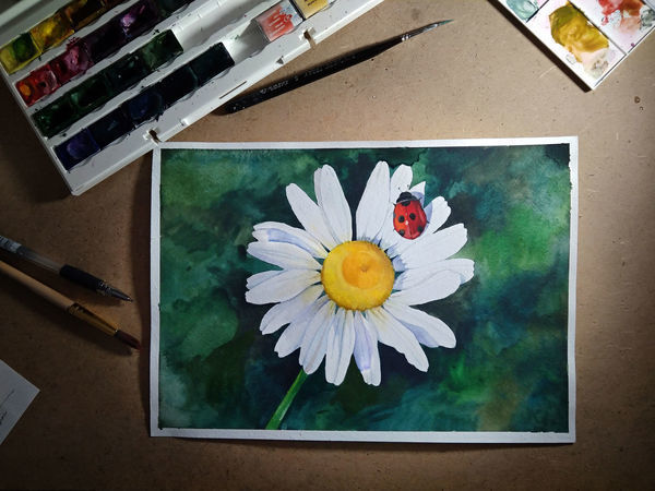 Нарисуваната с акварел маргаритка може да се рамкира и да се използва за украса на стаята.