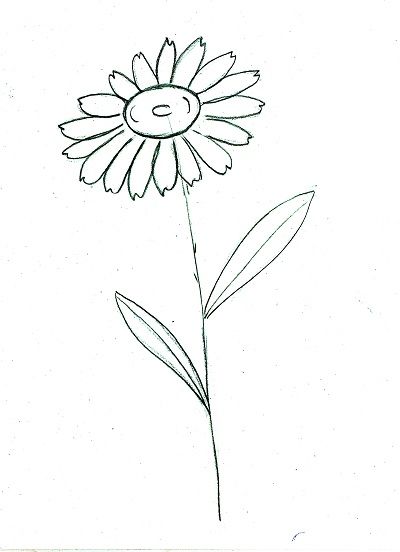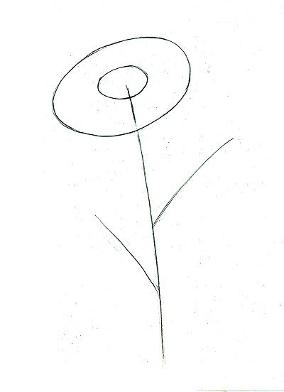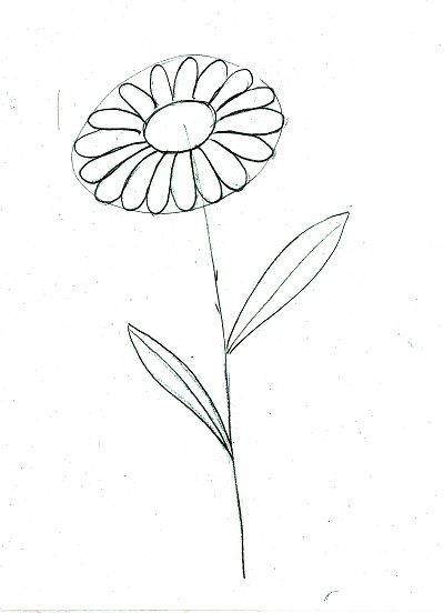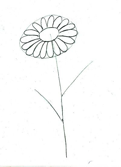 - От средата на цветето вертикално надолу прокарайте линия: стъблото.