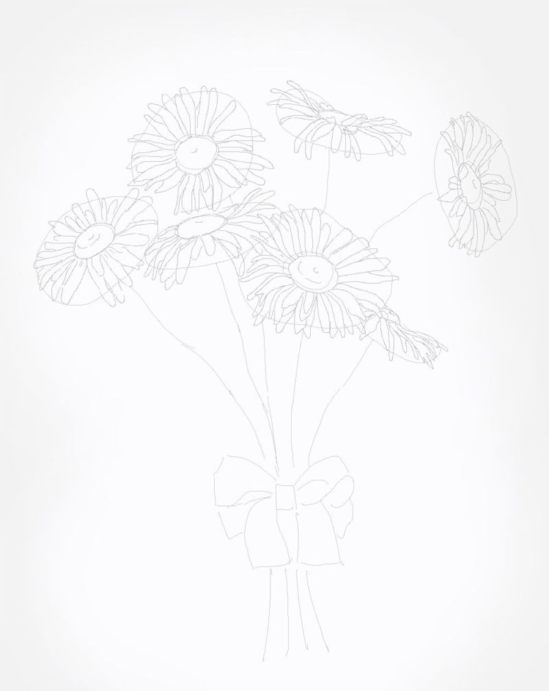 Нарисувайте очарователни цветя под формата на китка, както следва: