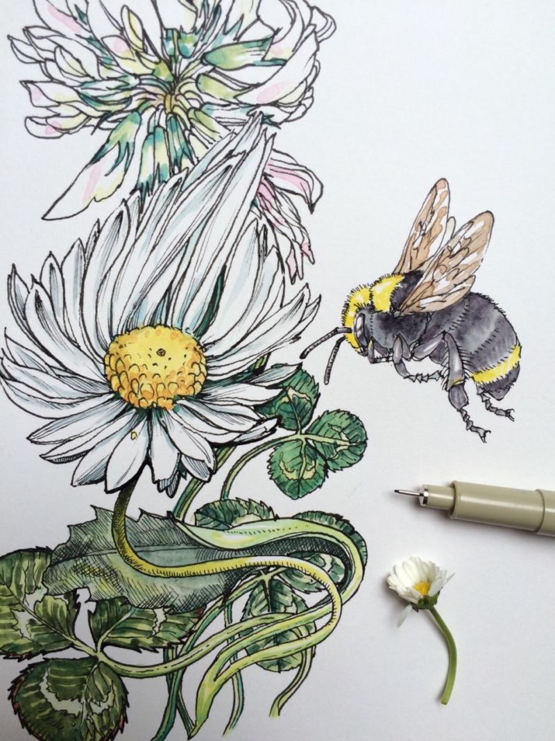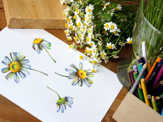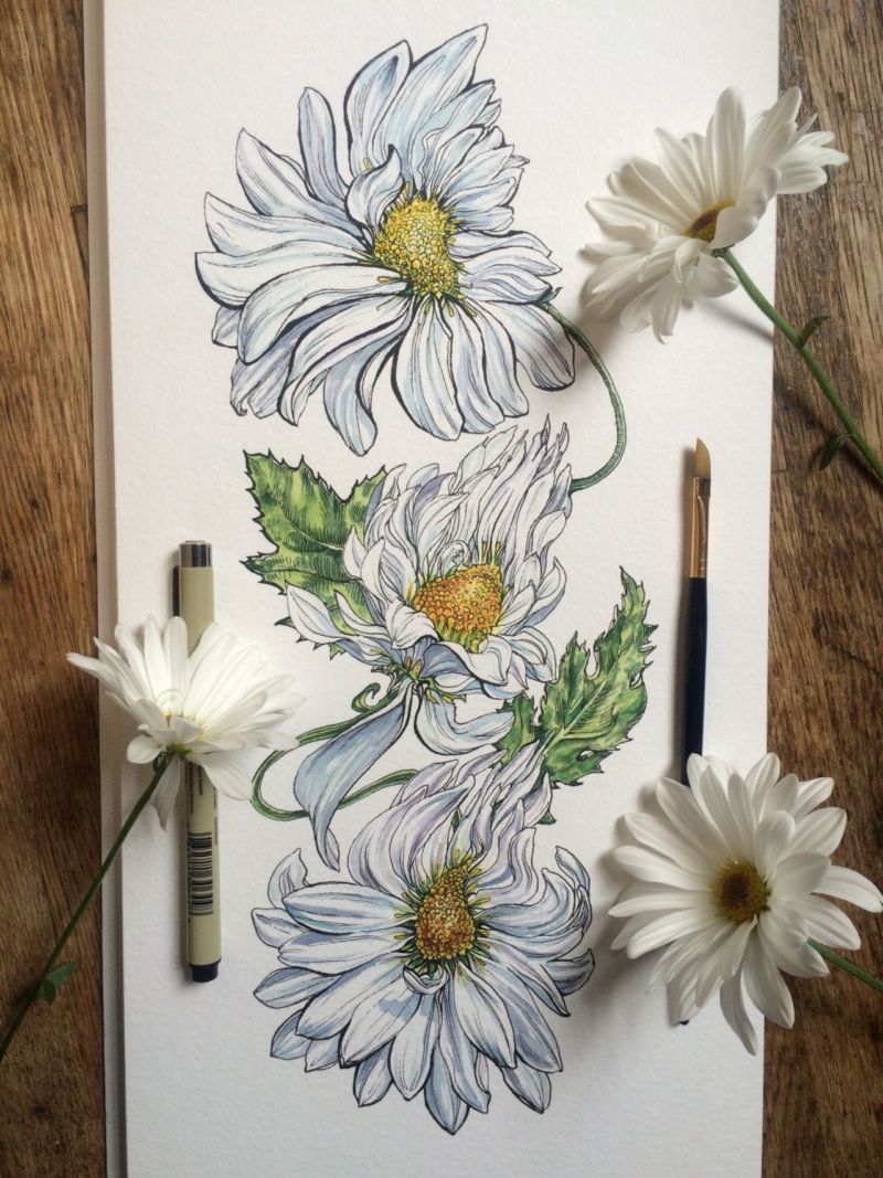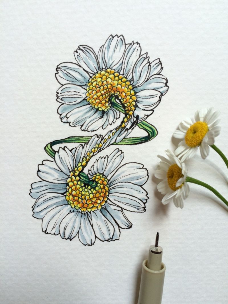 Маргаритката може да бъде изрисувана както в цвят, така и в черно и бяло.