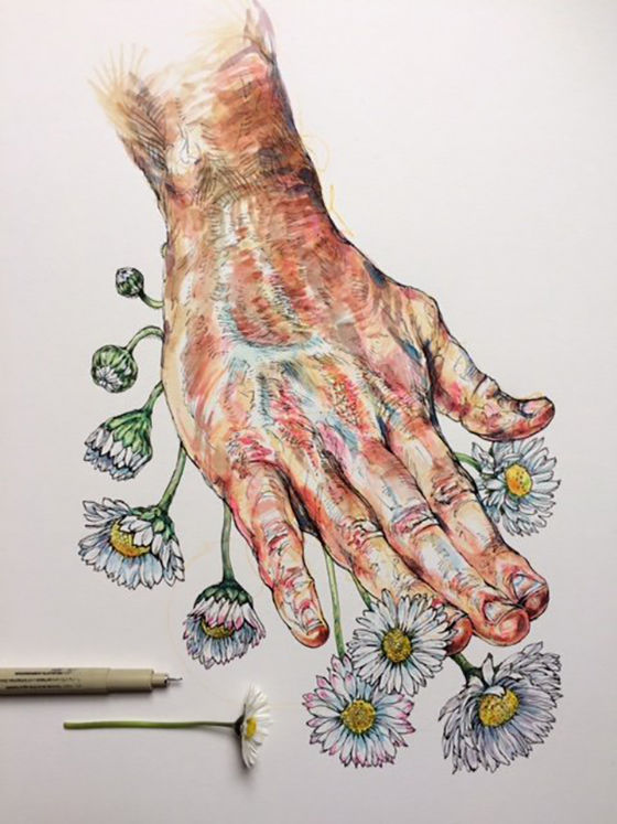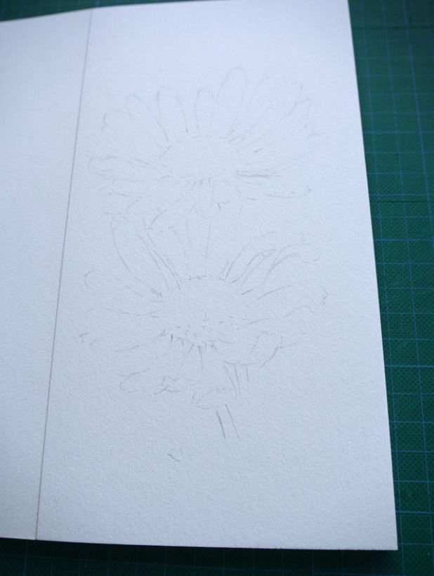 Понякога се използва тъмен флумастер (или маркер), за да се очертаят контурите на растителните части.