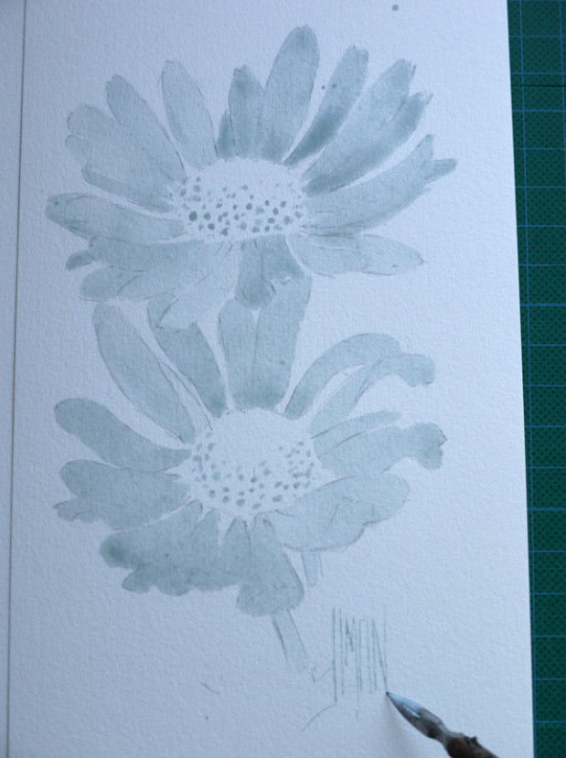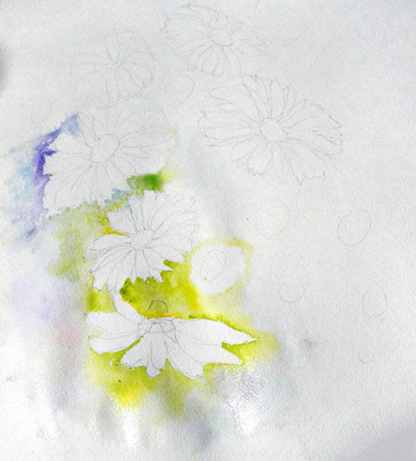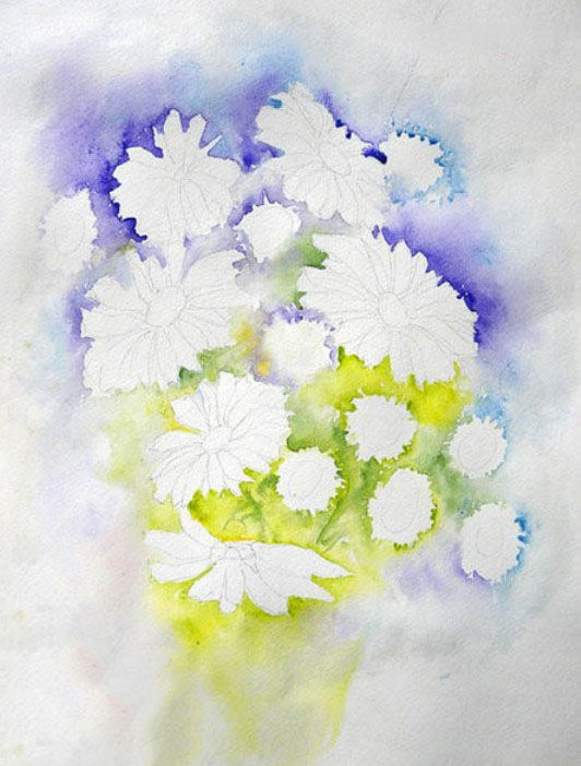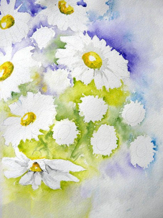 След като разполагате с материалите и инструментите на художника, можете да започнете. "Акварелна маргаритка" се прави в пет стъпки: