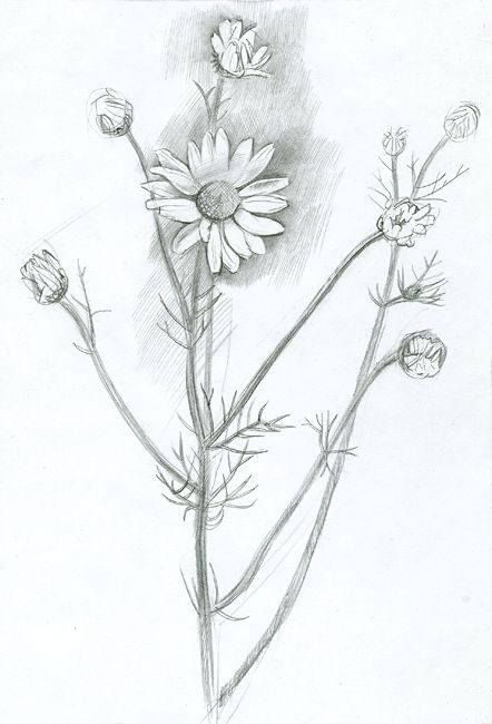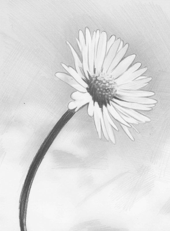 Всичко е готово, готова е скица с молив на маргаритка. Сега трябва да почистим с гумичка и да изчистим нюансите.