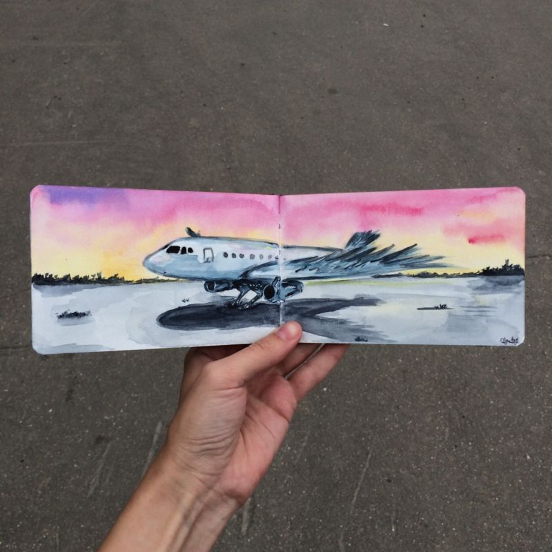 Можете да използвате гвашови и акварелни бои, да добавяте различни елементи от околната среда към самолета и да рисувате отделни детайли от дизайна.