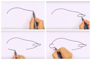 - Създайте контура на долната част на дизайна, като очертаете леко извита линия от опашката към предната част. Носът трябва да има голяма правоъгълна форма с леко заоблени ъгли.
