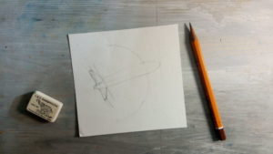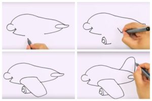 - Нарисувайте с бял молив голям издължен овал. Добавете опашка с формата на половин овал. По подобен начин добавете 2 крилца.