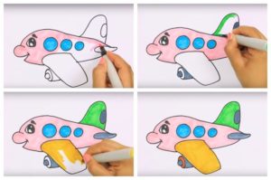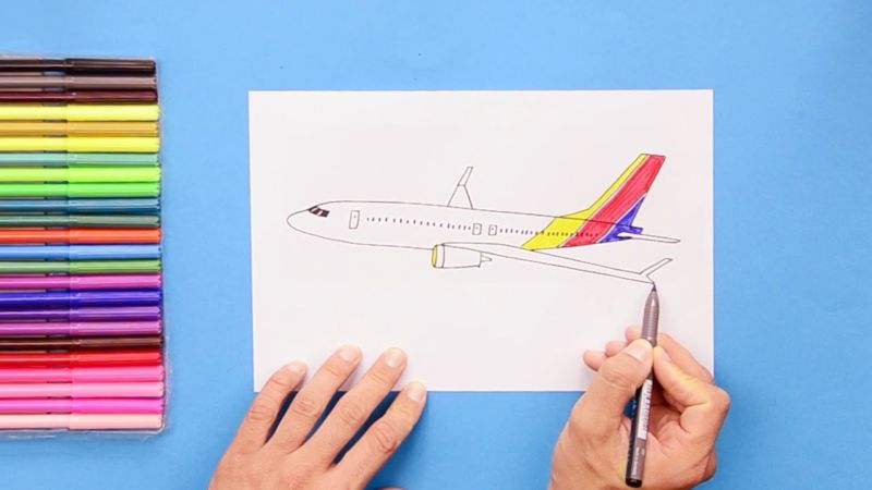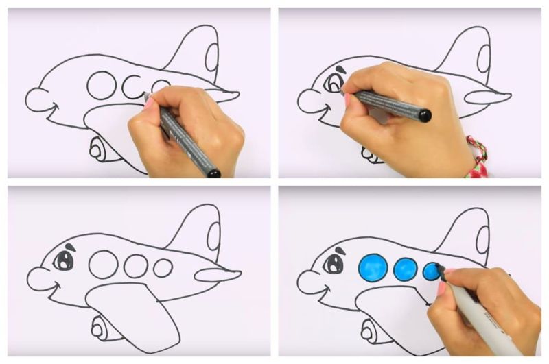 Нарисувайте забавен самолет с флумастери. Детето също може лесно да свърши тази работа.