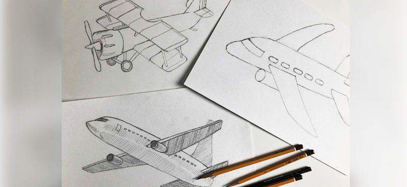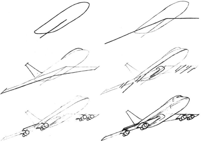 Как да нарисуваме самолет с молив и боя: военен, пътнически и прост