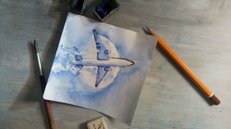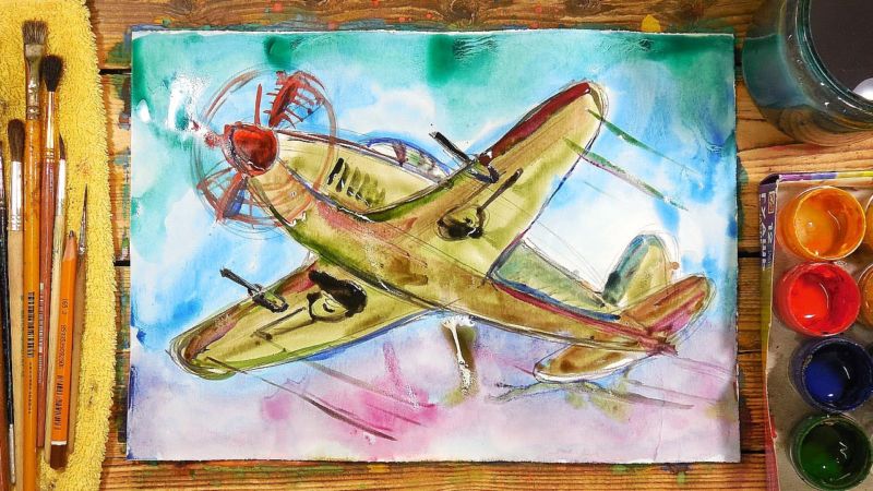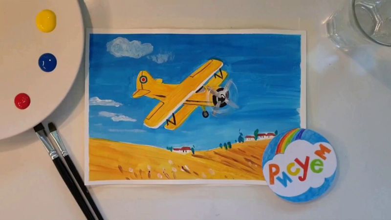 Рисуване на самолет с гваш
