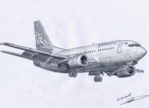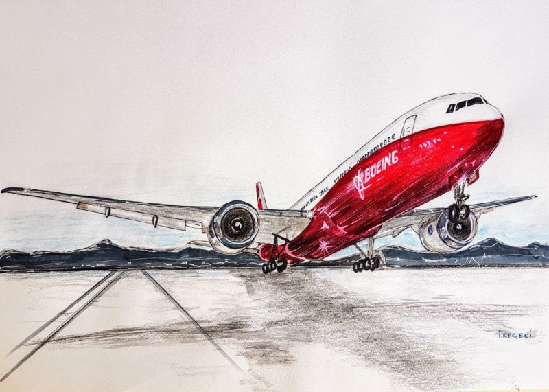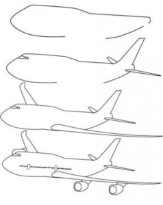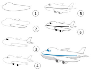 Ако военната тематика не допада на детето ви, можете да нарисувате пътнически самолет на Boeing. Това е по-сложна рисунка, която изисква ясно проследяване на детайлите, така че този вариант е подходящ за по-големи деца.