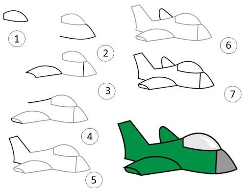 Инструкции за рисуване на военен самолет: