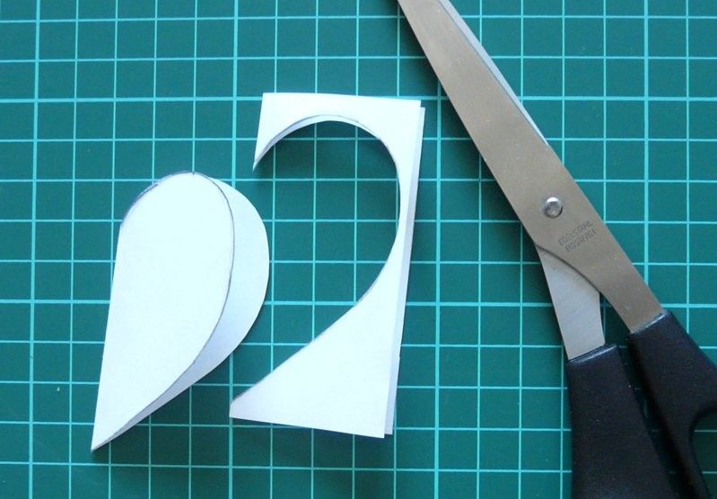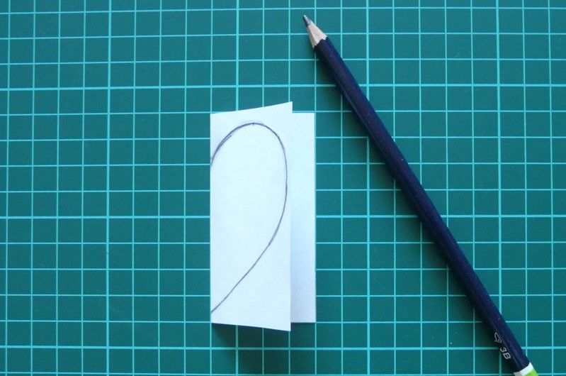 За да направите шаблон за сърце, вземете лист хартия с необходимия размер и го сгънете наполовина. Върху сгъвката нарисувайте сърцевидна половина на сърцето, подобна на капка, с желания размер.