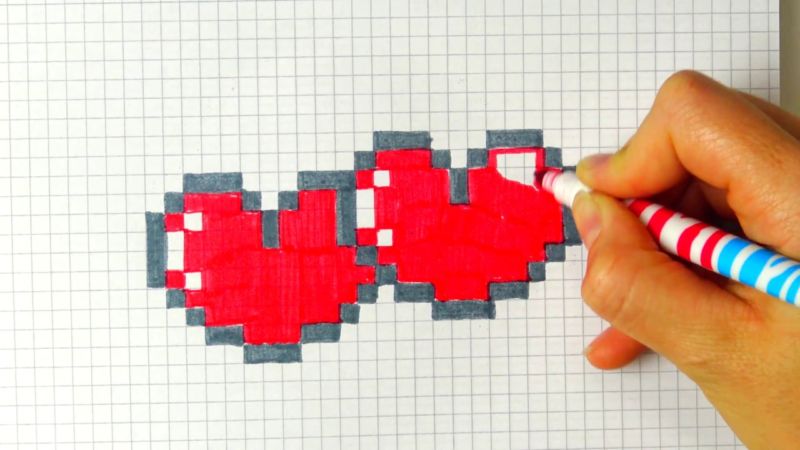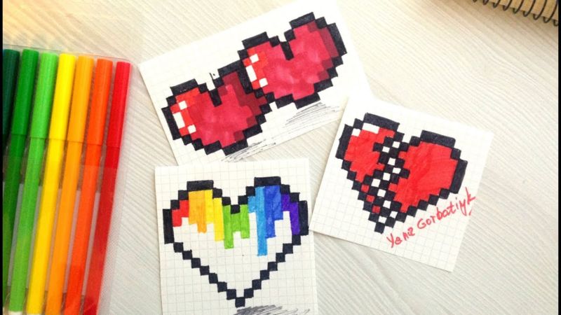 А ако краищата на клетките не са нарисувани по права линия, а са извити, картината ви ще бъде триизмерна. Друга интересна щампа е полка, която по същество е полка на точки. Сърце като това няма да остане незабелязано. Не са рядкост и случаите, когато върху сърцата са нарисувани смешни, усмихнати лица.