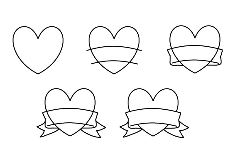 Много е лесно да нарисувате красива панделка върху сърце. Както и преди, ще ни трябва предварително нарисувано сърце: