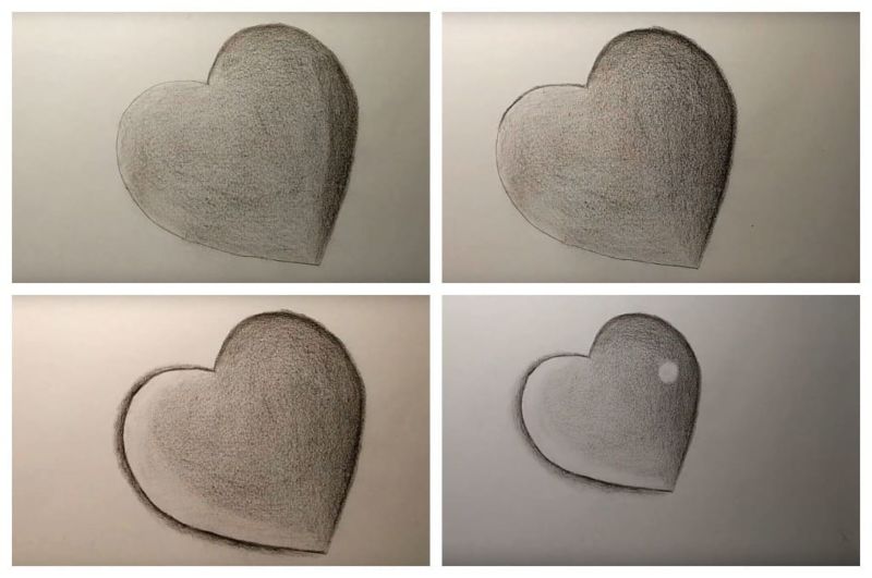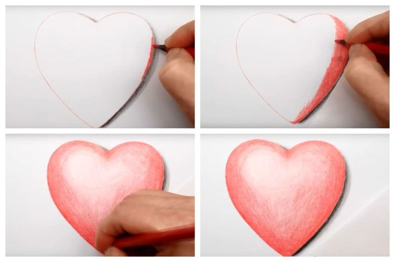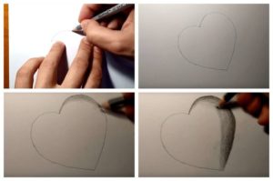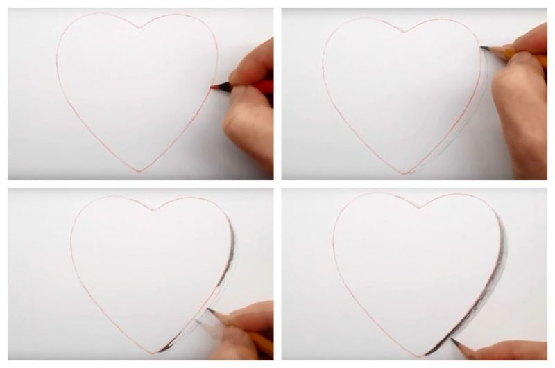 След като очертаете контура, можете да направите триизмерно сърце. За целта използвайте по-мек молив, за да рисувате сенки.