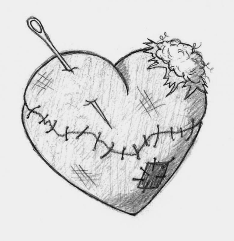 - От дясната страна, извън границите на сърцето, нарисувайте черна сянка, която е по-широка в средата на сърцето и по-тясна към краищата.