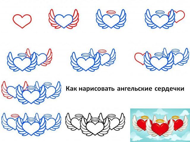 Ако искате да добавите различни красиви детайли към нарисуваното сърце, това също е лесно. Стрелките, крилата, панделките и панделките ще се съчетаят добре с дизайна. С малко практика можете да рисувате бързо и лесно.