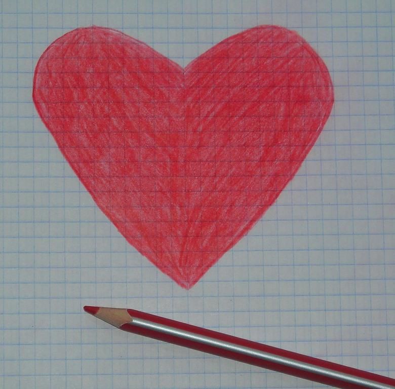 - Нарисувайте сърцето с мек молив, за да очертаете по-ясно границите му.