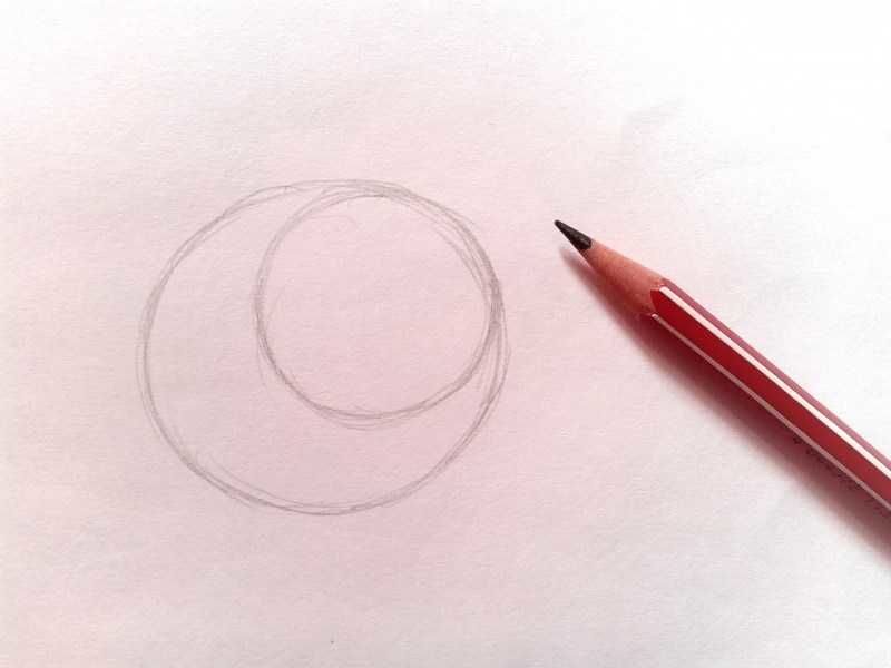- Точно под извитите линии нарисувайте кръг с по-малък диаметър, така че да излиза малко извън големия кръг.