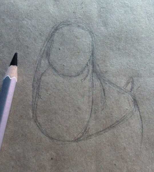 - Нарисувайте горната част на скицата, която е над нарисуваните овали.