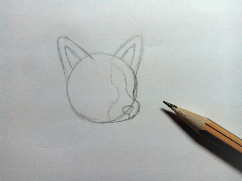 - Първо трябва да нарисувате малък кръг. Ако ви е трудно да рисувате, можете да използвате компас. Тази фигура ще служи за приблизителна глава на животното.