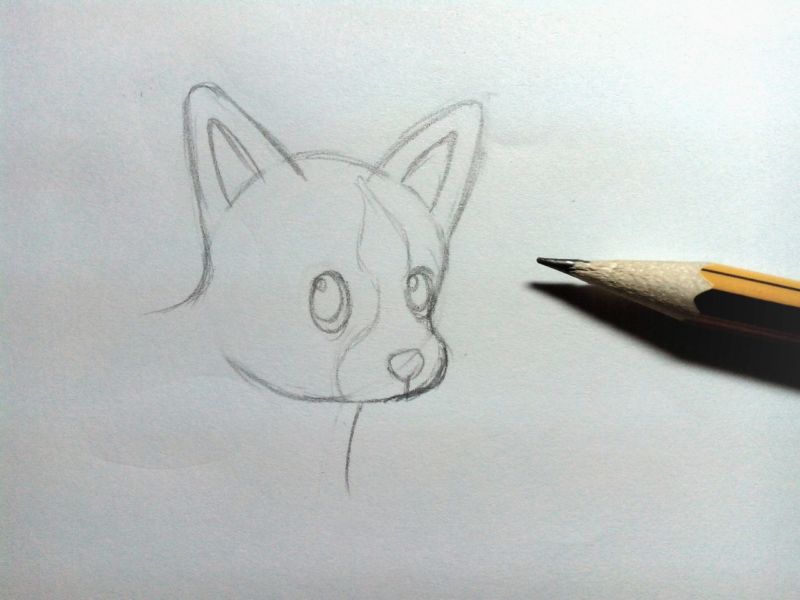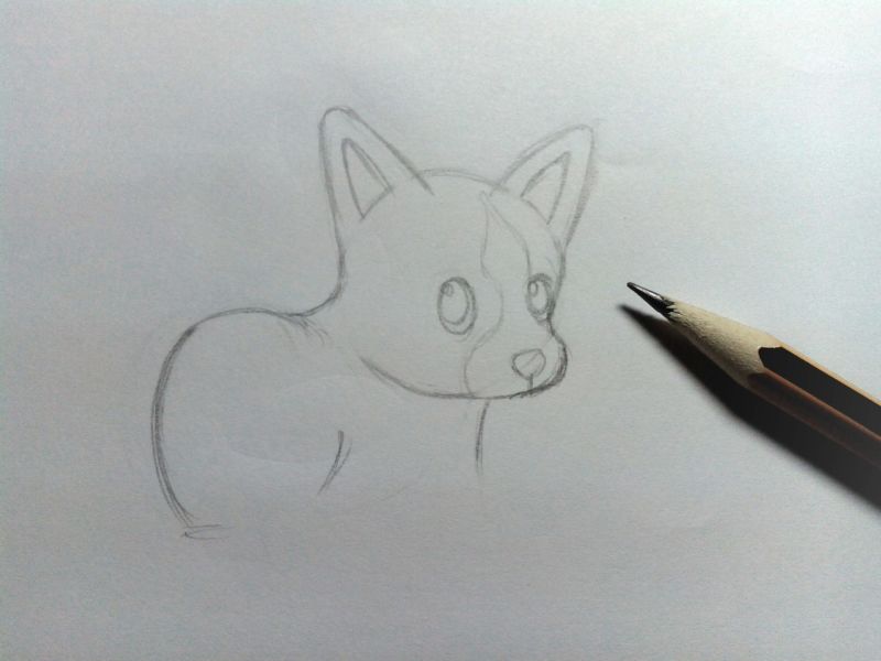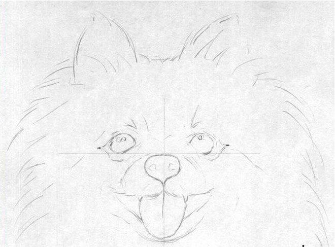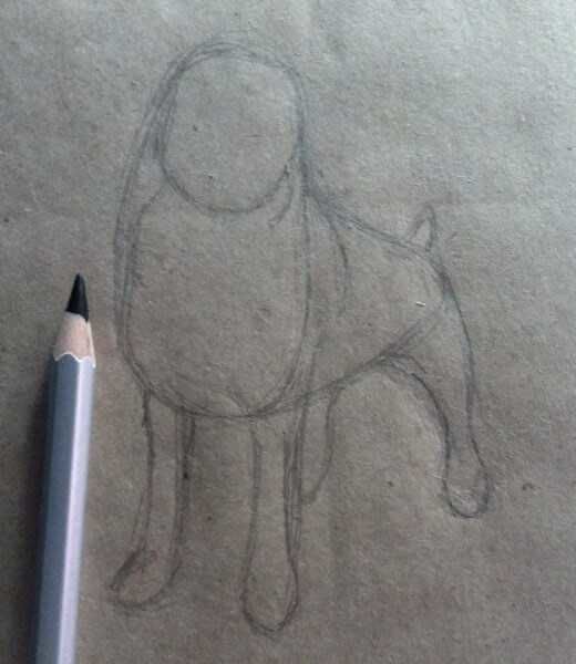 - Като използвате тези геометрични форми, нарисувайте груба скица на бъдещото куче. Добавете всички липсващи детайли към портрета.