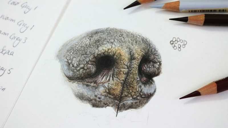- Нарисувайте ноздрите по ръбовете и вътре в овала.