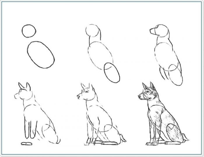 Как да нарисуваме куче в рисунка с молив: скициране и рисуване на всички части на тялото