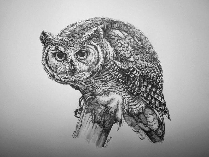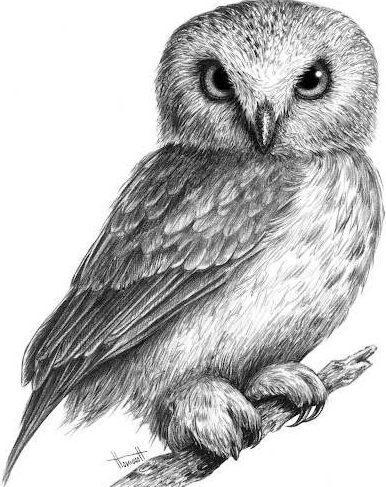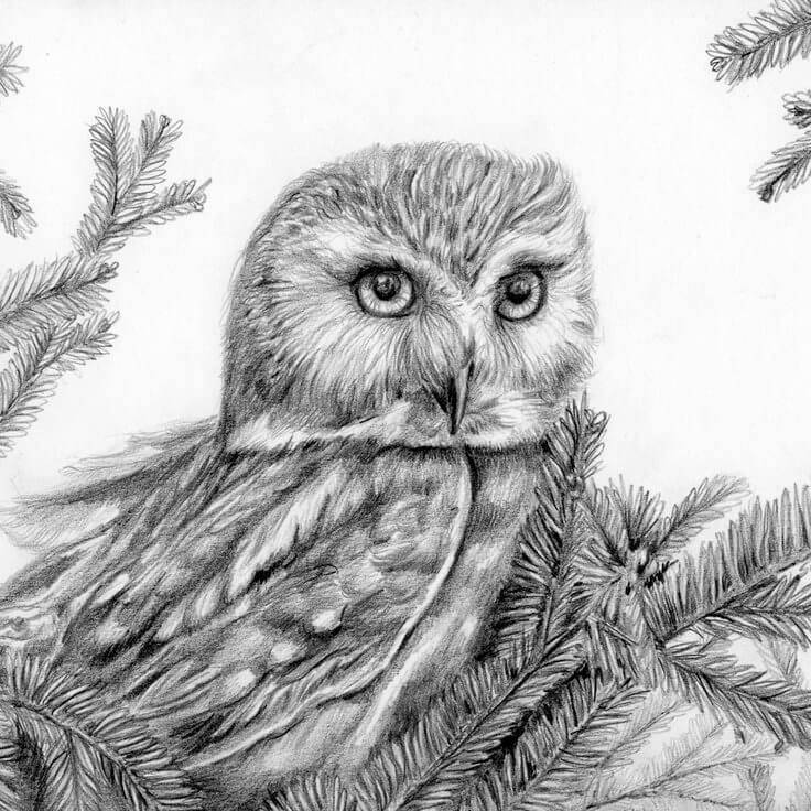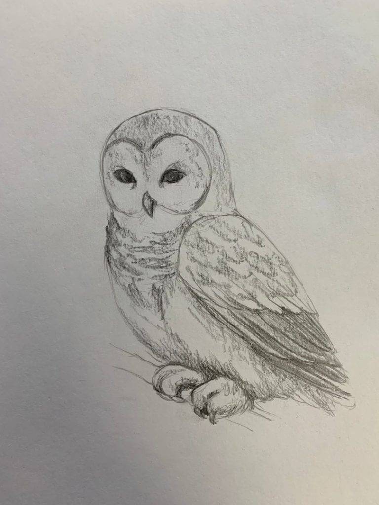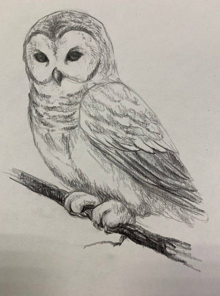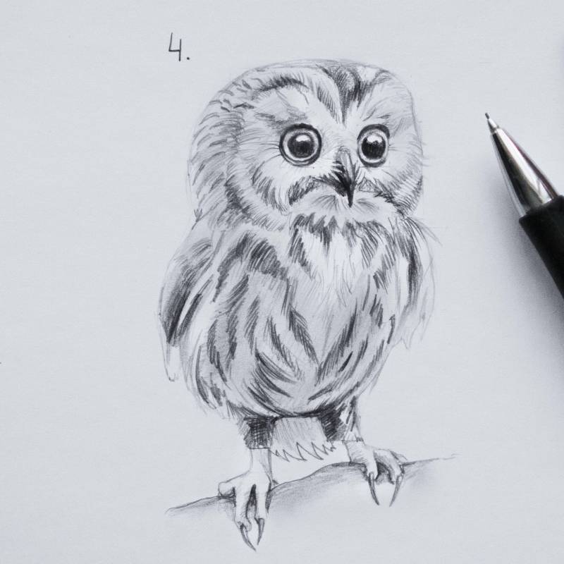 С това завършва създаването на очарователен нарисуван бухал, кацнал на клонче от дърво. Можете да нарисувате птицата и без клон - просто пропуснете тази стъпка и се съсредоточете повече върху перушината на птицата.
