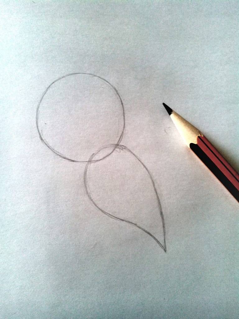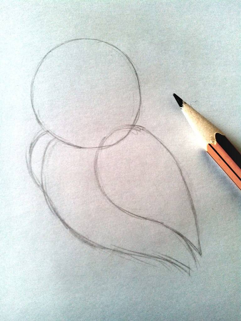 Формата на пернатото животно отново ще бъде създадена с помощта на прости геометрични фигури. Главата е кръгла, торсът - овален, а опашката - полукръгла.
