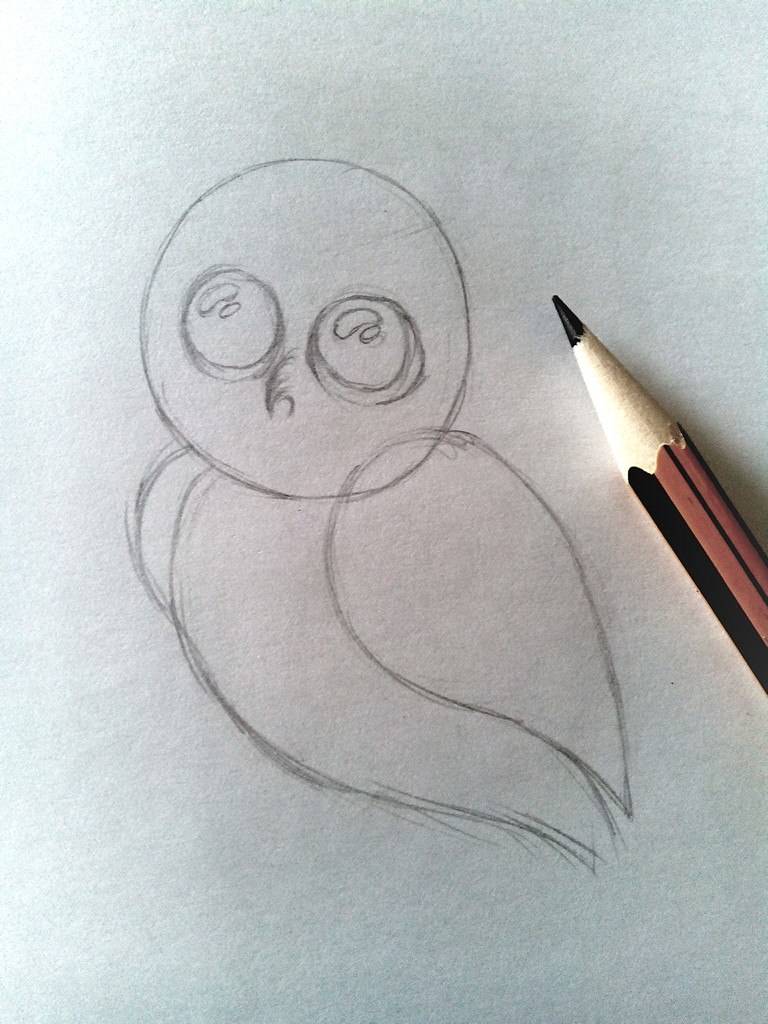 Почти всяка рисунка се основава на геометрични фигури. За да нарисувате красив бухал, трябва да го нарисувате схематично. Овалът ще бъде главата, а кръгът - тялото. Нарисувайте тези фигури със среден молив. Продължете със същия молив.