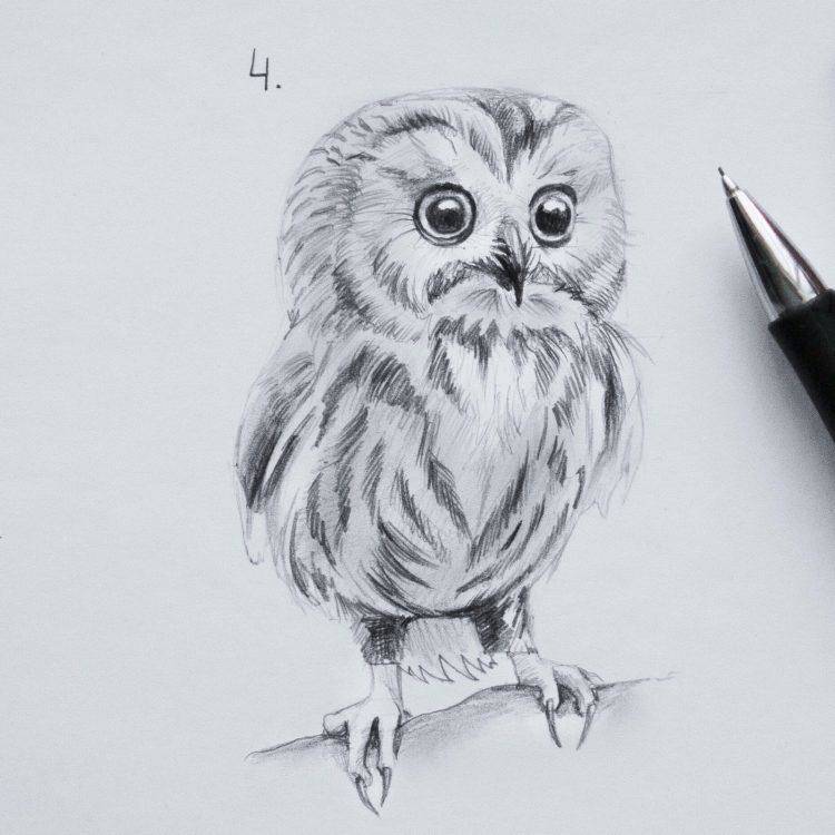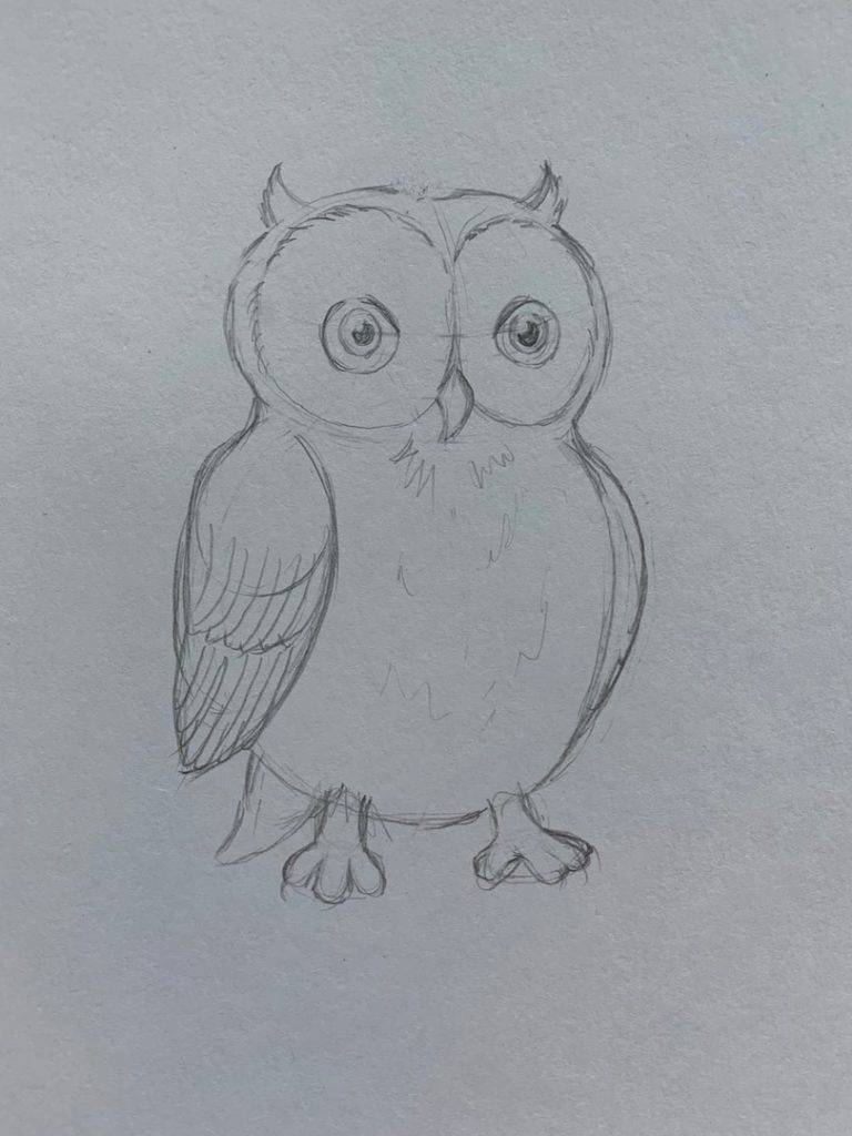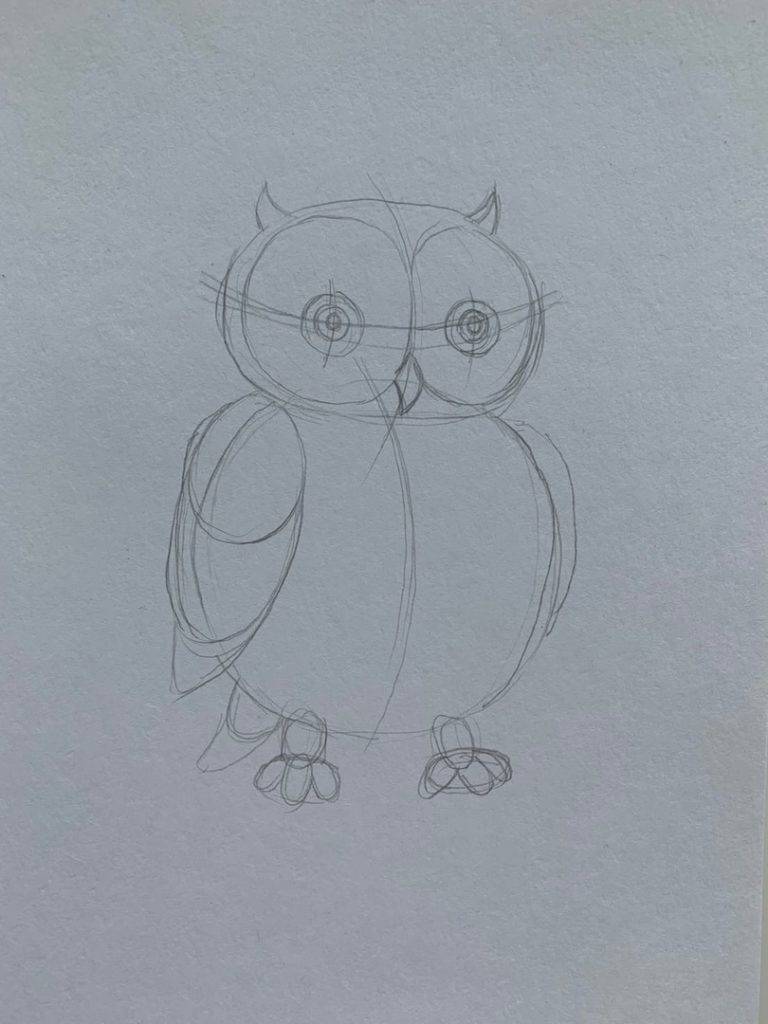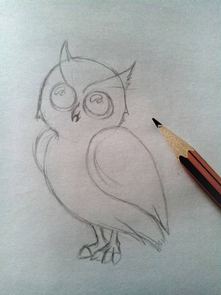 Най-лесната и бърза стъпка. Просто изтрийте с гумичка, като оставите само силуета на совата.