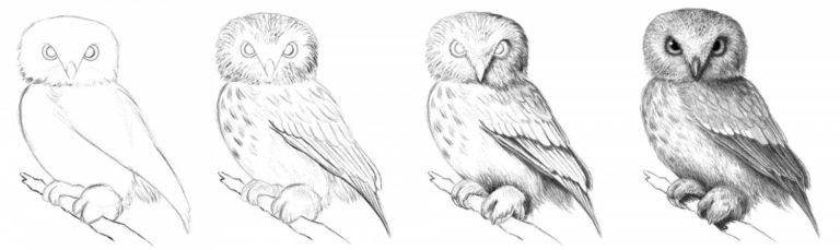 В тази статия са представени няколко варианта за рисуване на птицата. Можете да използвате всеки, който ви харесва, за да изобразите възхитителен мъдър бухал.
