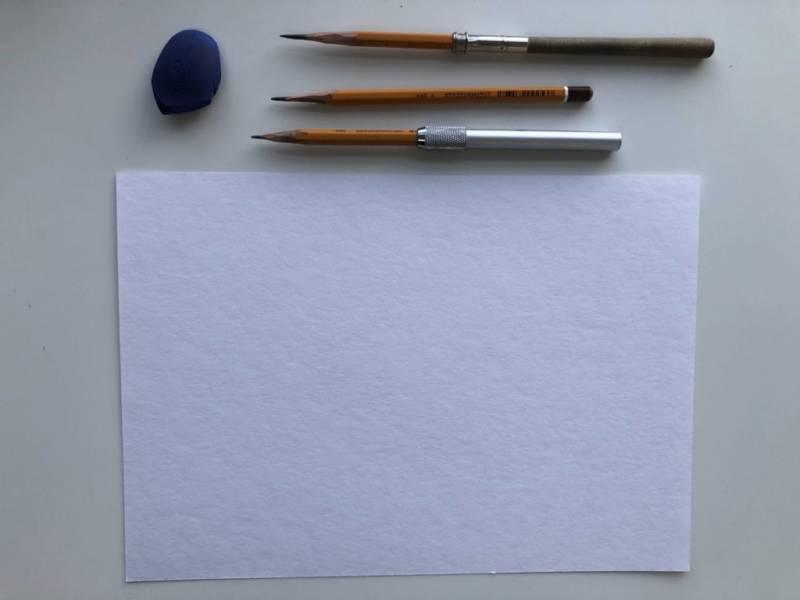 Необходими са ви два молива: един средно мек и един доста мек. За да изтриете ненужните линии и да се отървете от грешките, вземете добра гума.