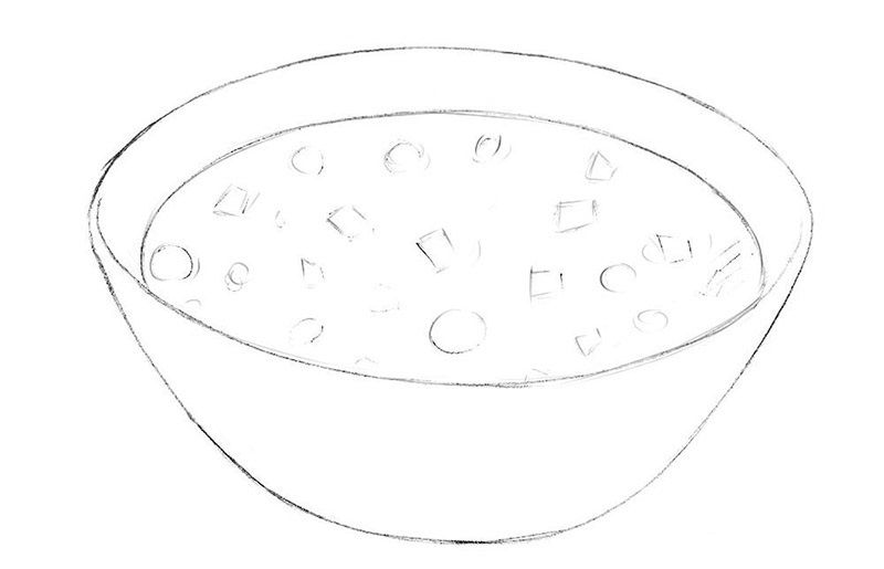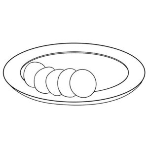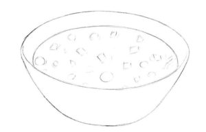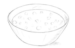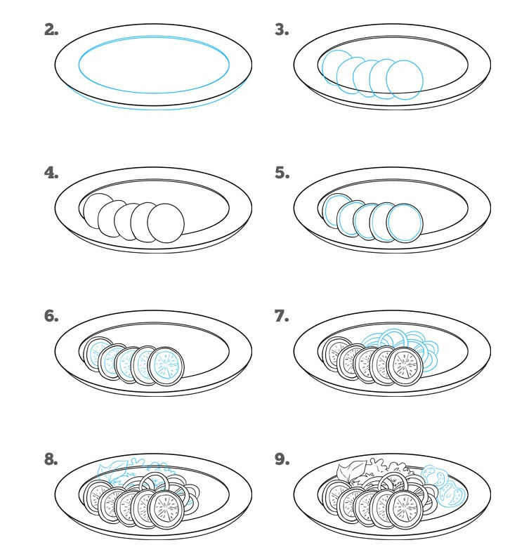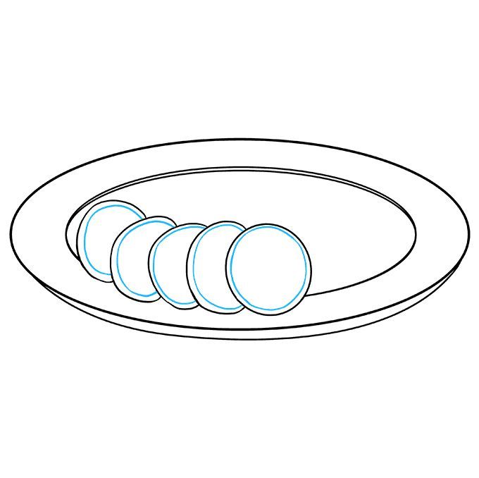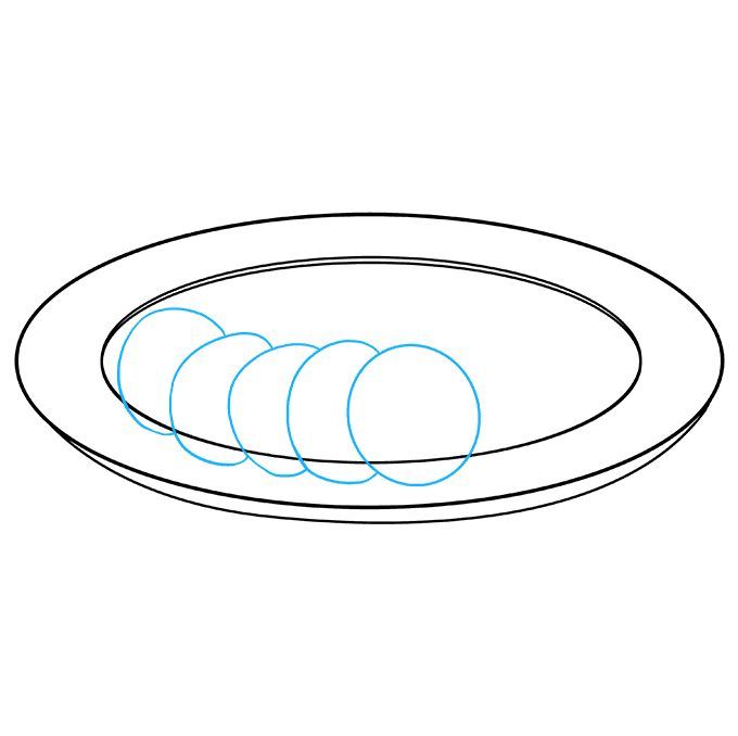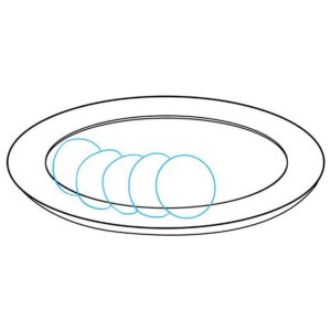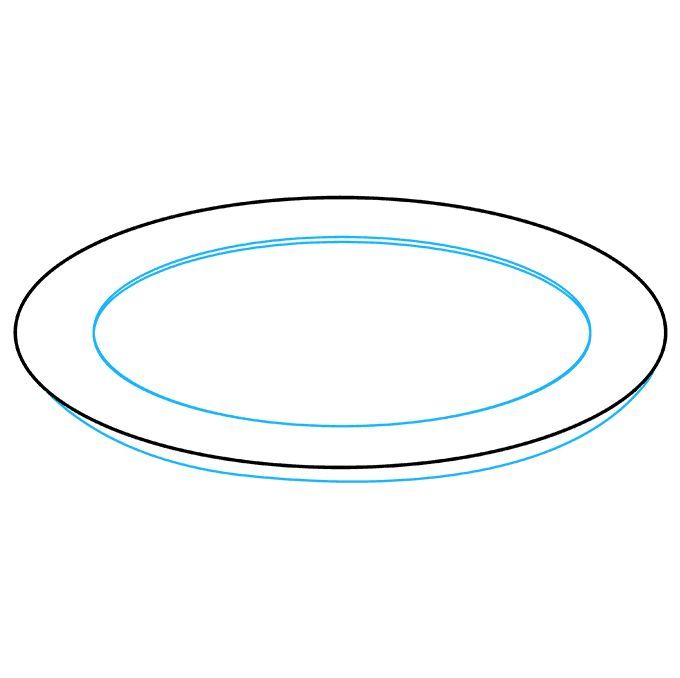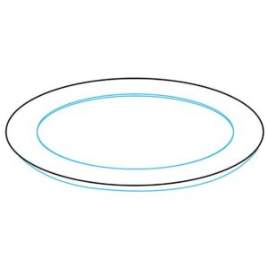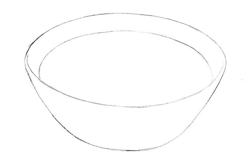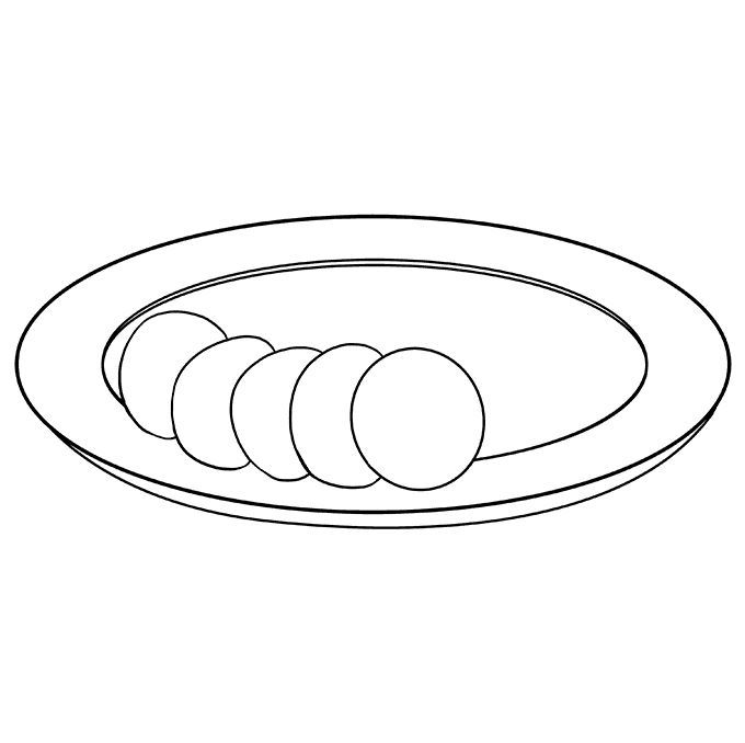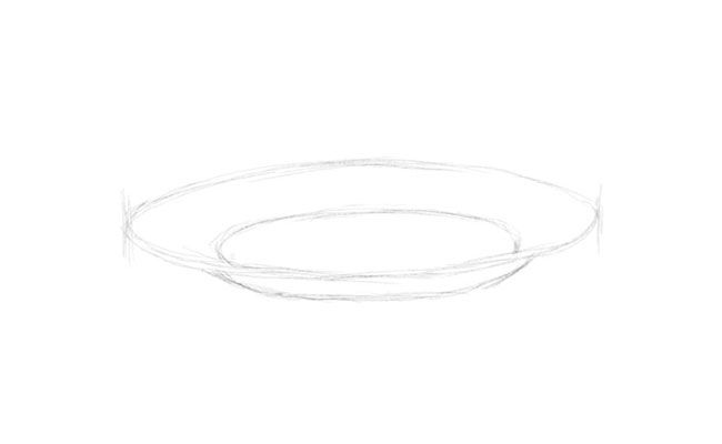 Първо се начертава прост овал. Вътре, в долната част на овала, се начертава дъга, която създава по-малък овал отгоре и наподобява полумесец в долната част. По-малкият овал е вътрешната част на чинията, а долният полумесец - външната.