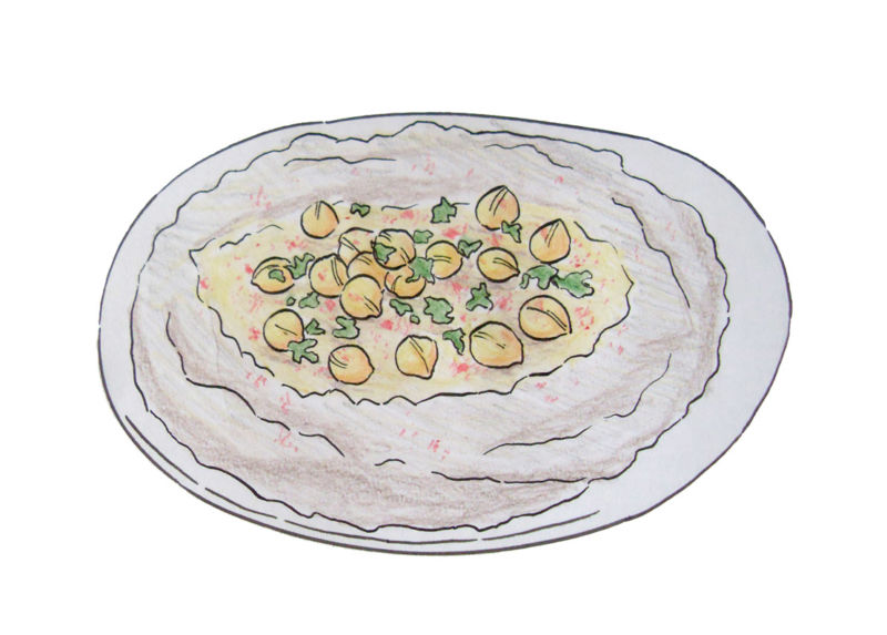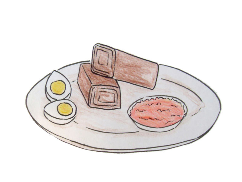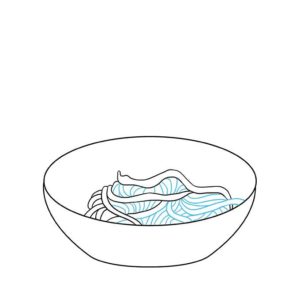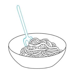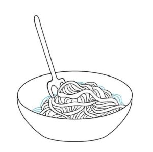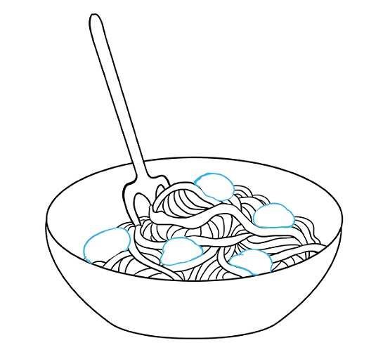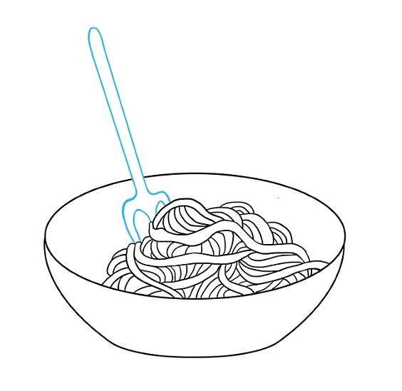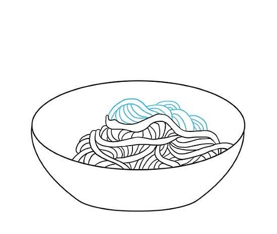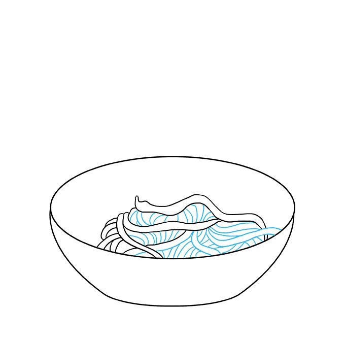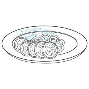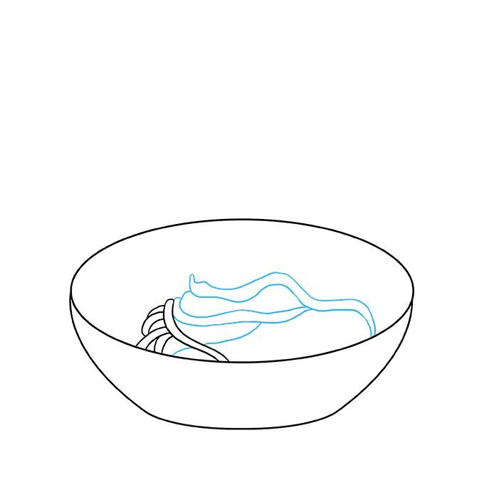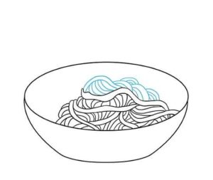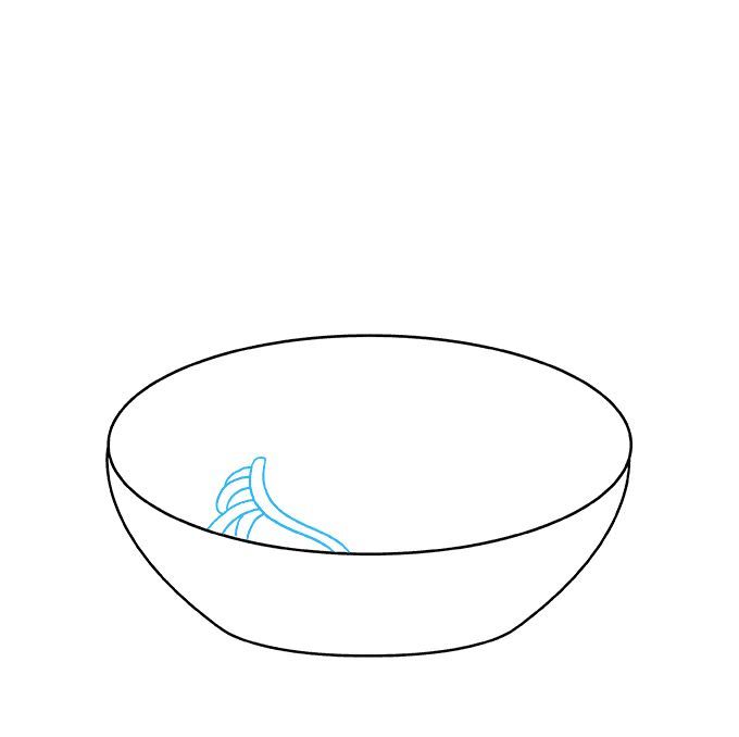 Първо се начертава прост овал. Вътре, в долната част на овала, се начертава дъга, която създава по-малък овал отгоре и наподобява полумесец в долната част. По-малкият овал е вътрешната част на чинията, а долният полумесец - външната.