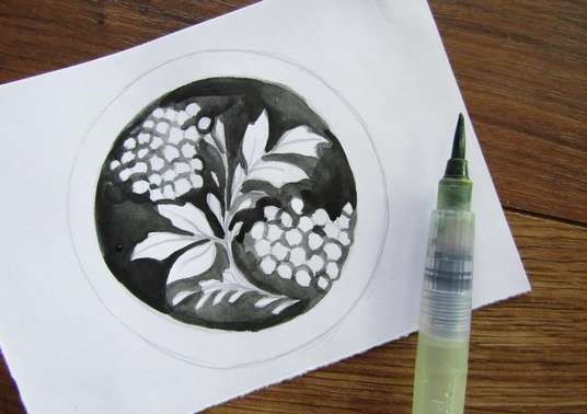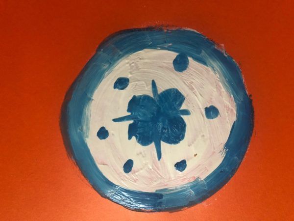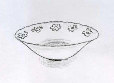 Сенките и засенчването се използват за придаване на обем на пространството. В главния кръг, който е вътре, се изискват леки и прецизни движения на ръката, за да се нанесат сенки за маркиране на дъното и страните на дъното на чинията. Ръбът на чинията трябва да бъде засенчен с ненатрапчиви линии.