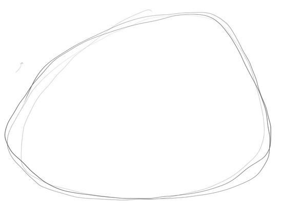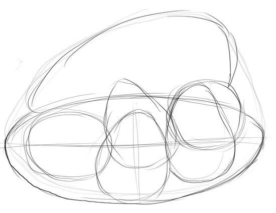 Вътре в първия нарисуван овал се начертава друг подобен овал, но възможно най-близо до долната дъга на основния овал. Отдолу е нарисувана долна линия.