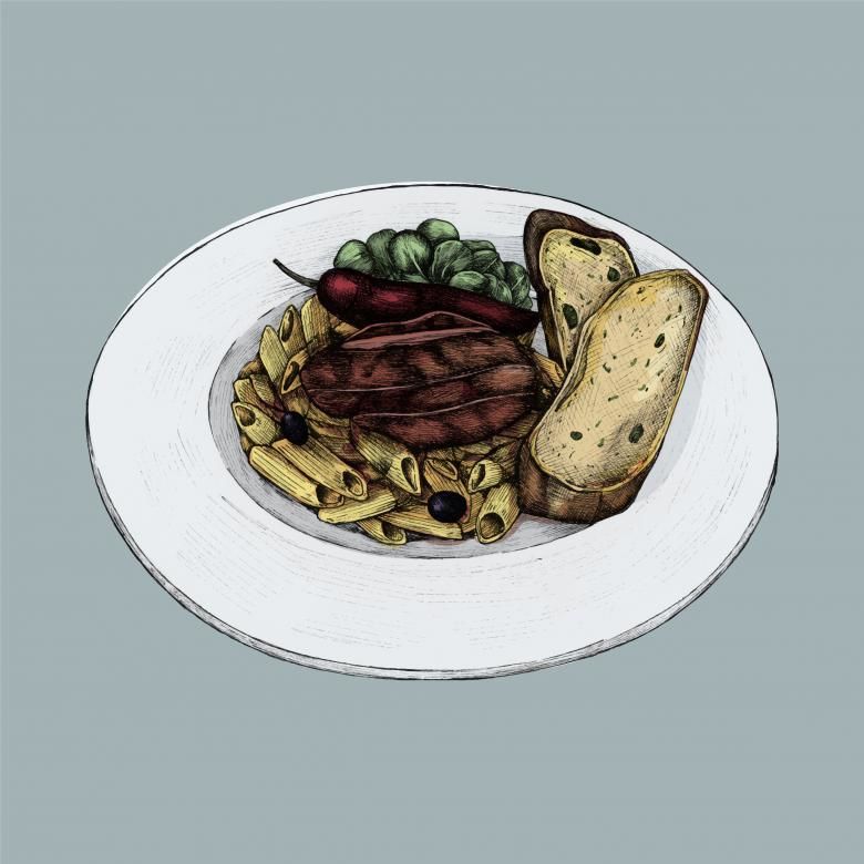 Дълбока чиния със салата или паста