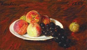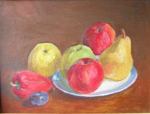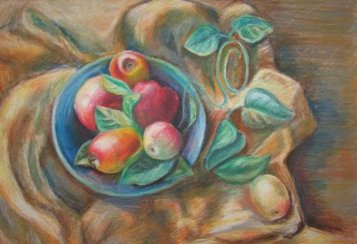 Плодовите чинии често са в центъра на картините с натюрморт. Важно е да се спазват пропорциите както на чинията, така и на плодовете в нея.