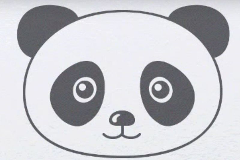 - Да се изобрази лице на малко животно е лесно. Нарисувайте очите в кръг, а черните зеници - също в кръг. Важно е да се подчертае цветът на пандата. Около очите ѝ има черни петна. Те са нарисувани с черен восъчен пастел. Остава да довършите рисунката на носа и усмивката.