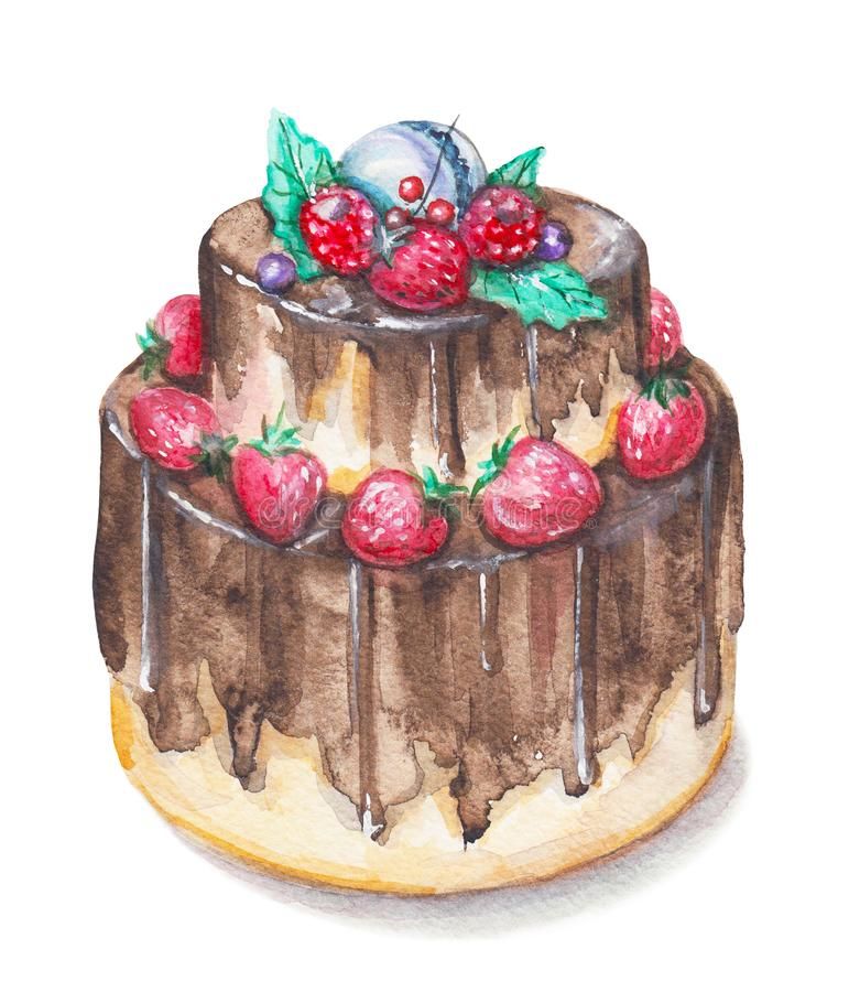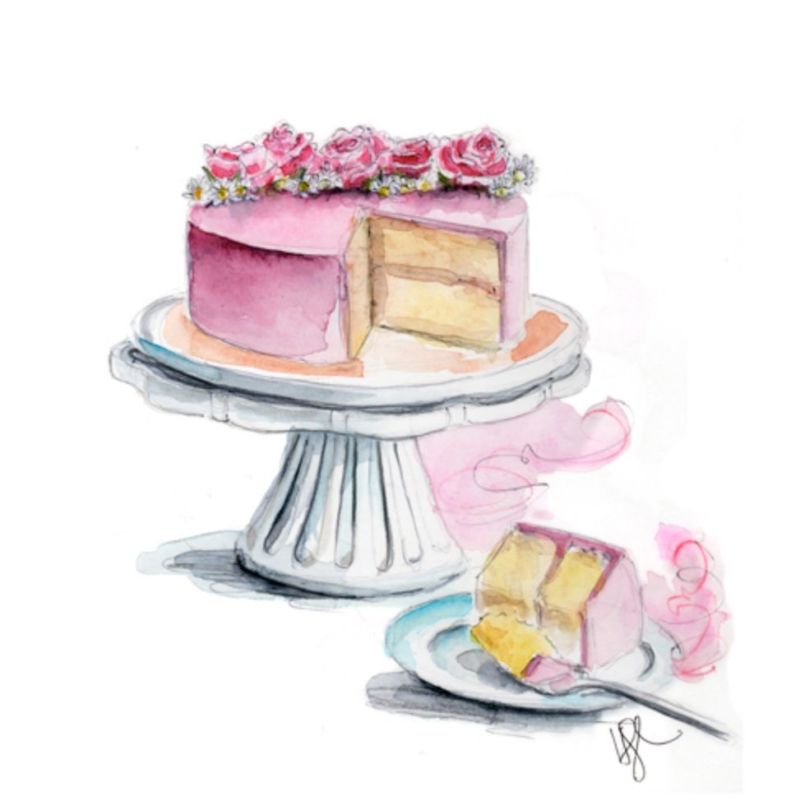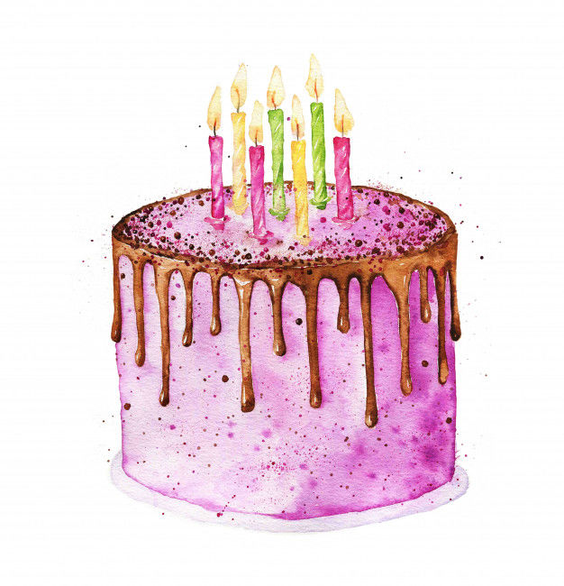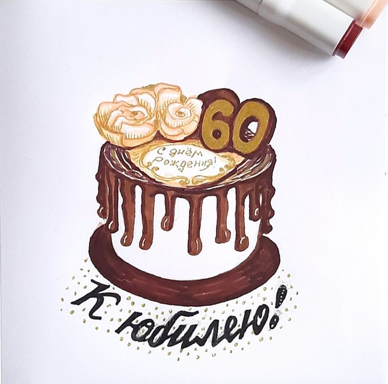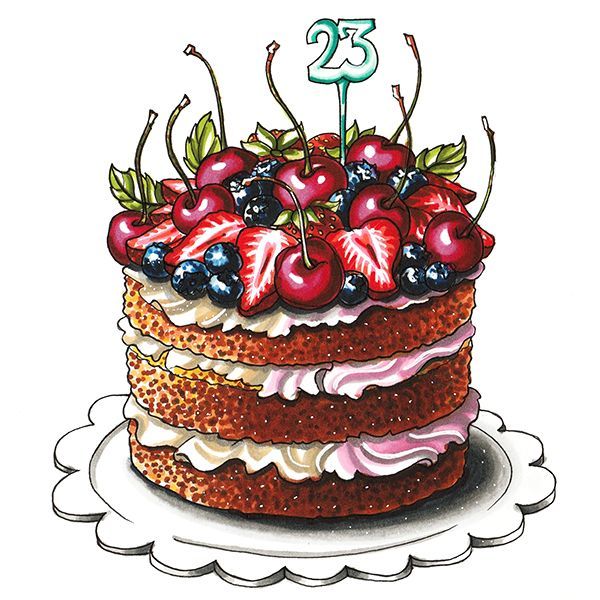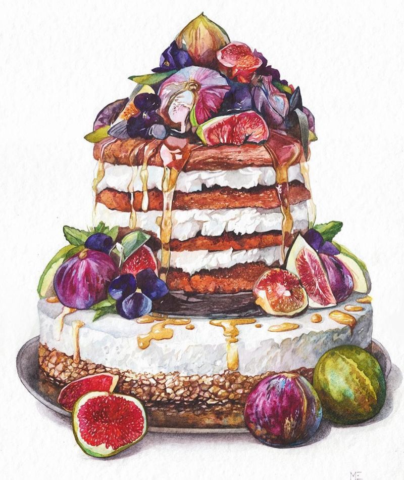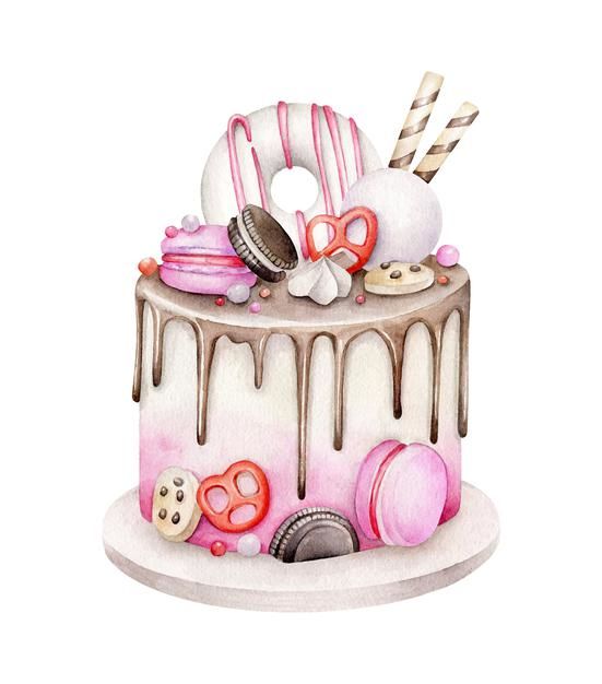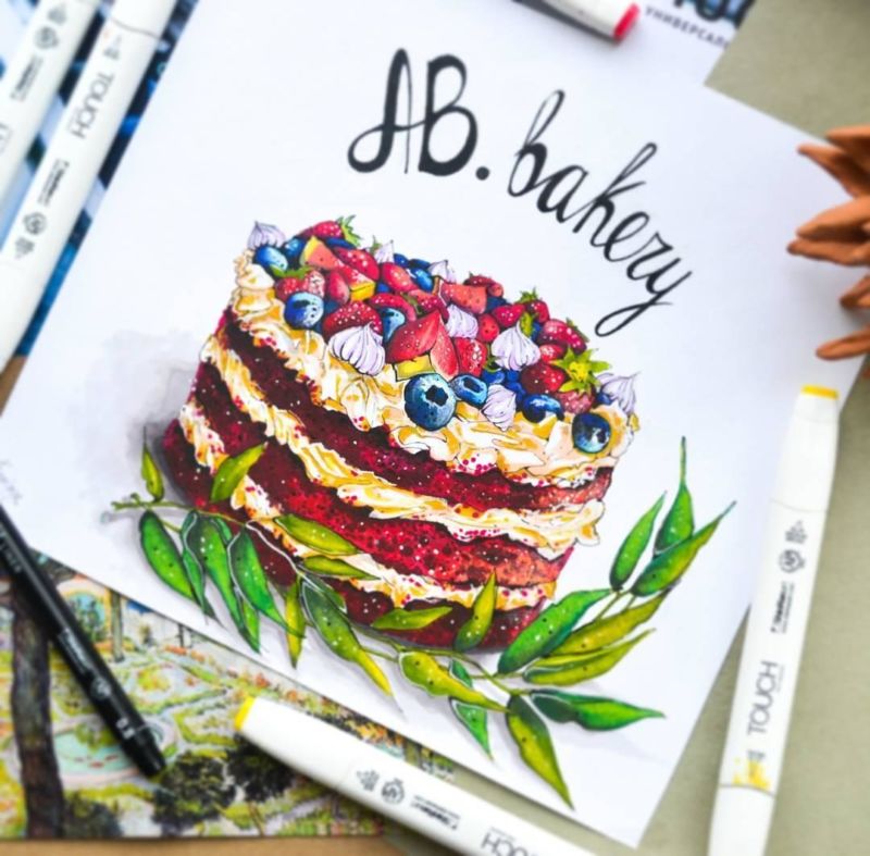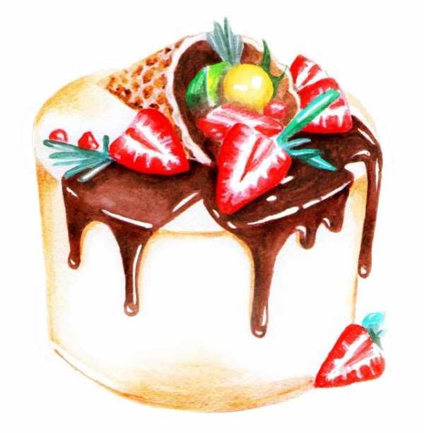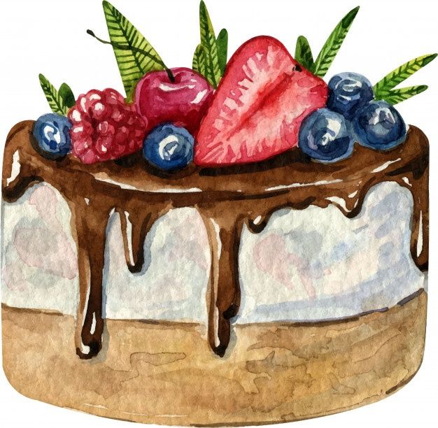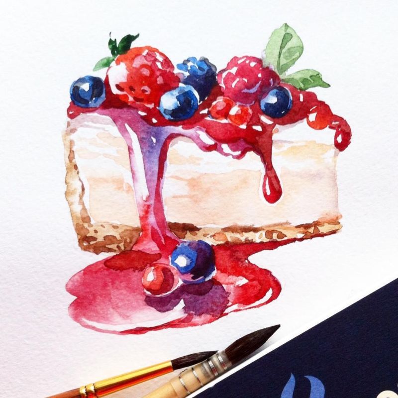 По-добре е да нарисувате такава торта с акварелни бои или гваш. Първо изтрийте помощните линии и очертайте всички контури с молив. След това можете да вземете четка. Важно е да изберете правилната боя за желания ефект.