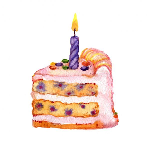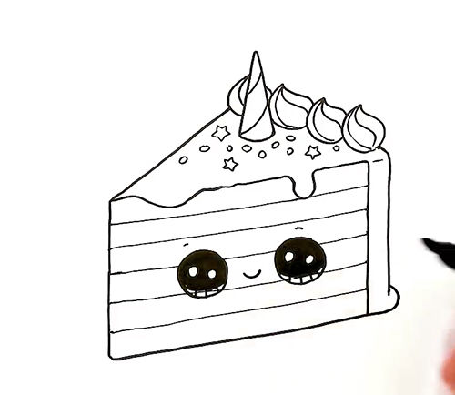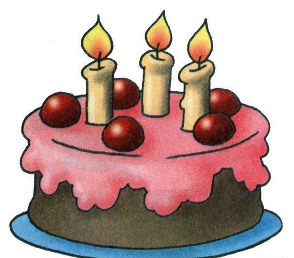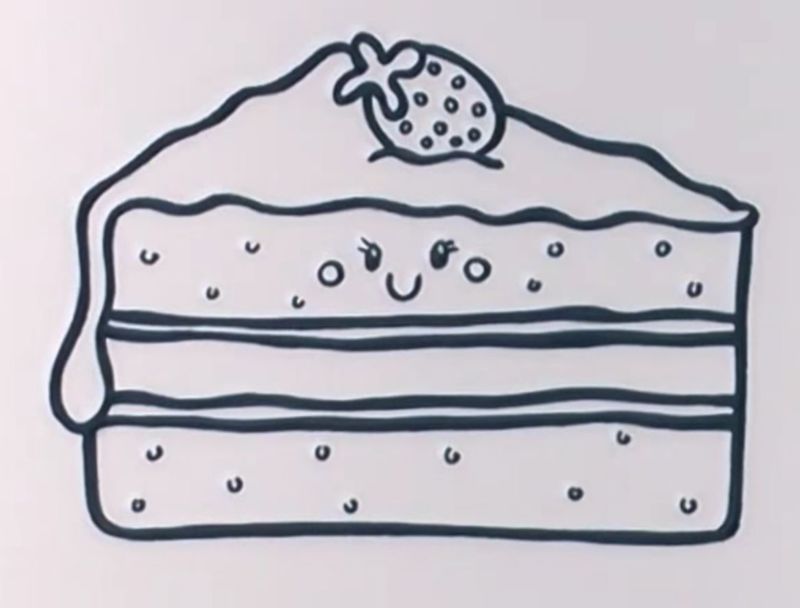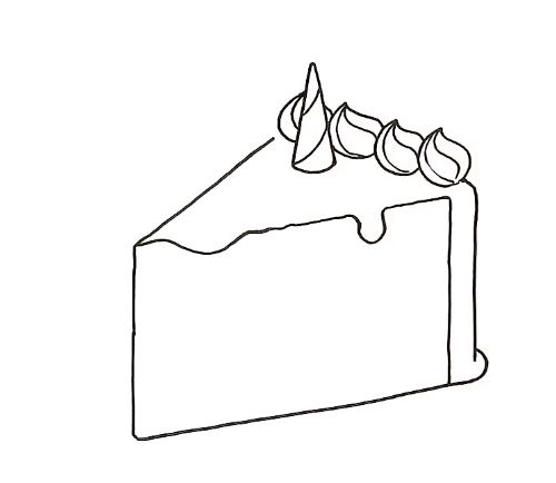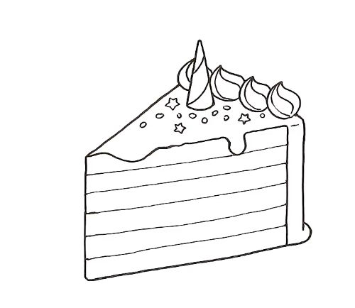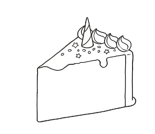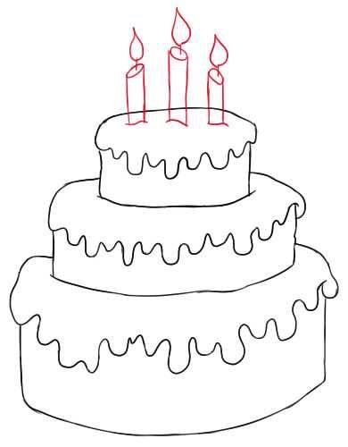 - Контурът на парчето торта е готов. След това трябва да нарисувате елементите: вътрешните слоеве, крема, свещите като декорация;