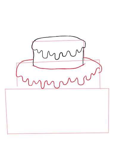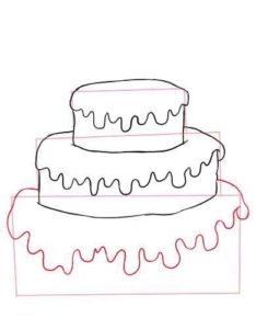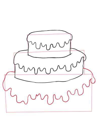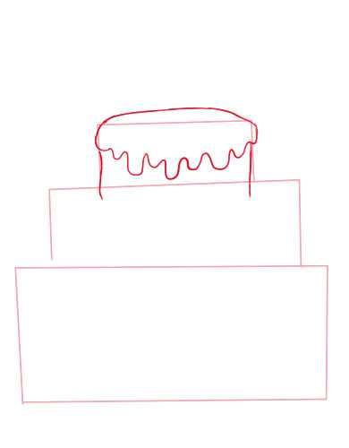 - Върхът на всеки етаж се украсява със сладкарска глазура. За целта нарисувайте вълнообразна линия под горните линии, за да симулирате разнасяне на глазура;